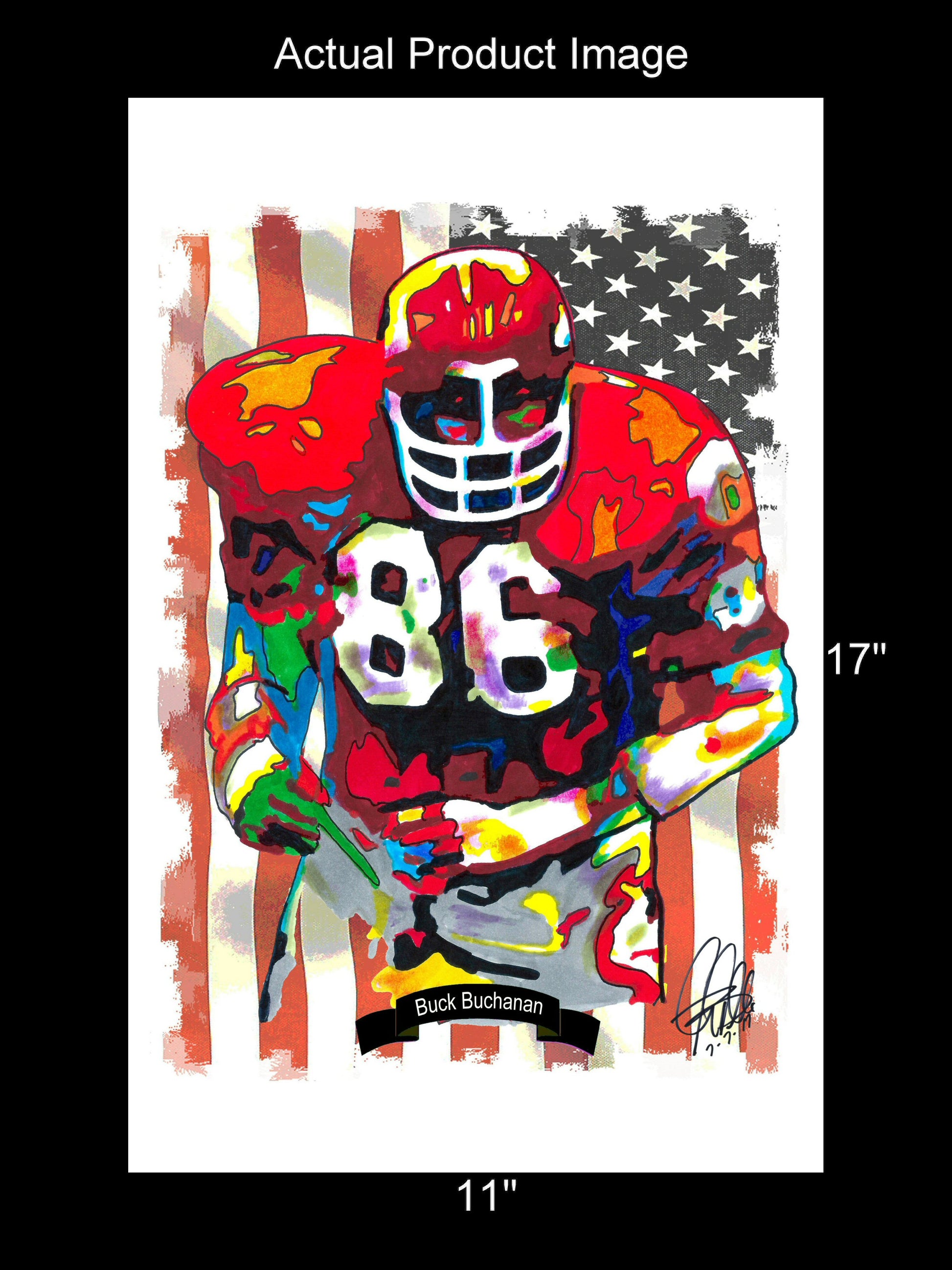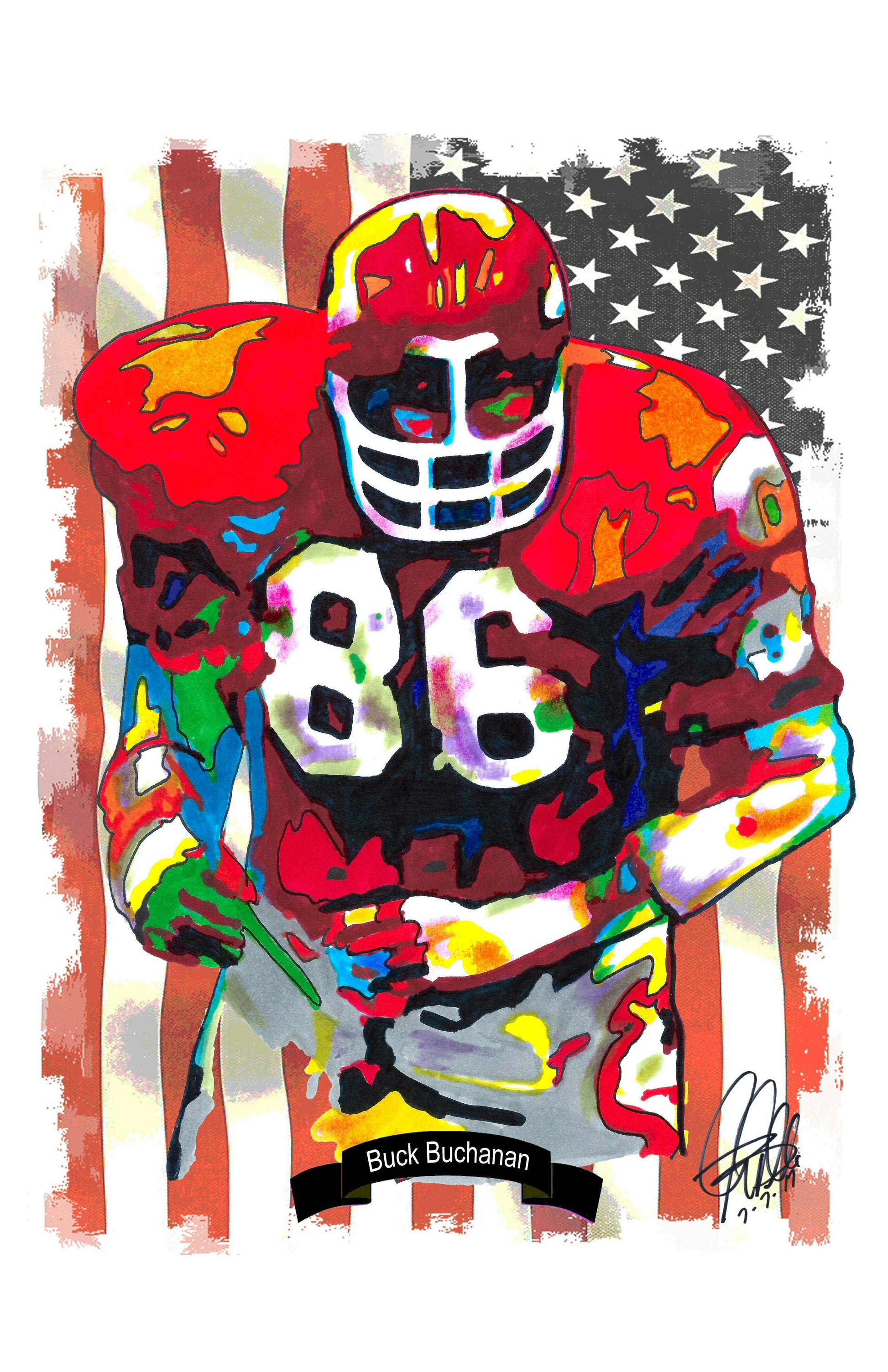 Print from Original Ink Drawing of Buck Buchanan of the Kansas City Chiefs. Printed on 11"x17" Premium Gloss High Quality Photo Paper. Print is great for matting and display – Signed & Dated by Artist on front of print - comes with Certificate of Authenticity with Your Name - will be shipped inside 3 x 30" 2 Mil Industrial Poly Bag & 2" x 19" Kraft Mailing Tubes with End Caps - .070: thick