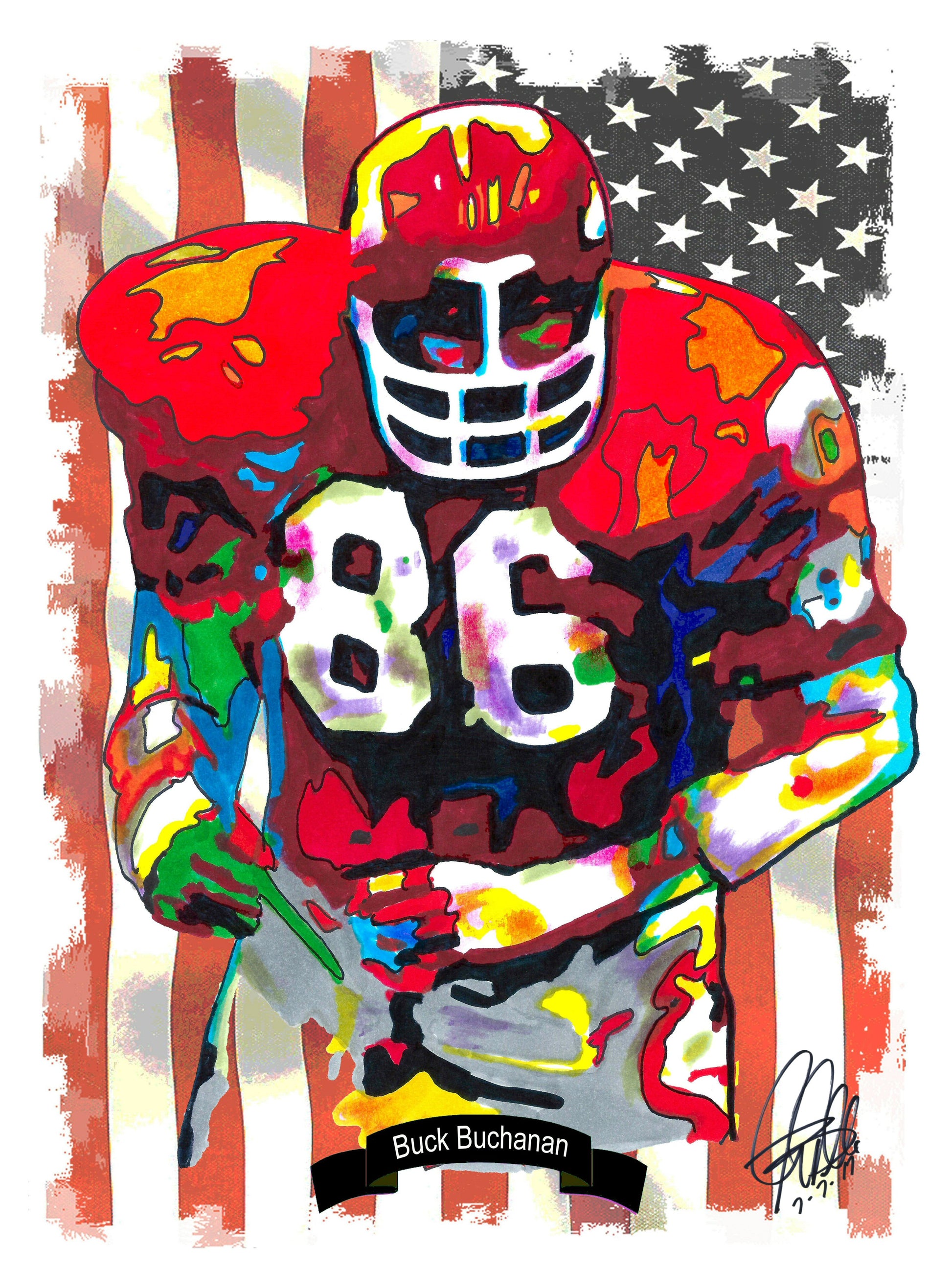 Print from Original Ink Drawing of Buck Buchanan of the Kansas City Chiefs. Printed on 8.5"x11" Premium Gloss High Quality Photo Paper. Print is great for matting and display – Signed & Dated by Artist on front of print - comes with Certificate of Authenticity with Your Name - will be shipped inside 12"x12"x1" sturdy container.