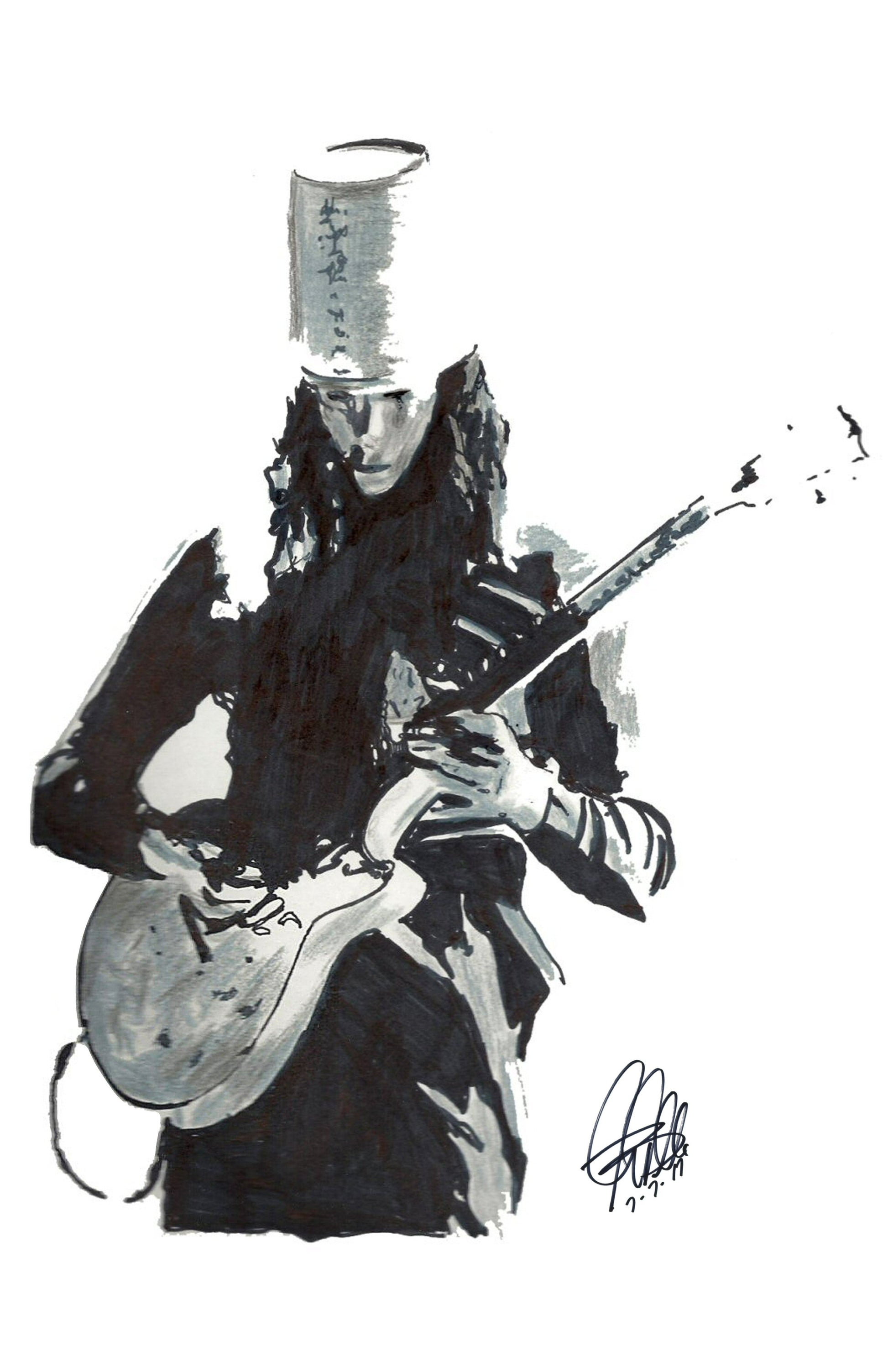 Print from Original Ink Drawing of Buckethead. Printed on 11"x17" Premium Gloss High Quality Photo Paper. Print is great for matting and display – Signed & Dated by Artist on front of print - comes with Certificate of Authenticity with Your Name - will be shipped inside 3 x 30" 2 Mil Industrial Poly Bag & 2" x 19" Kraft Mailing Tubes with End Caps - .070: thick