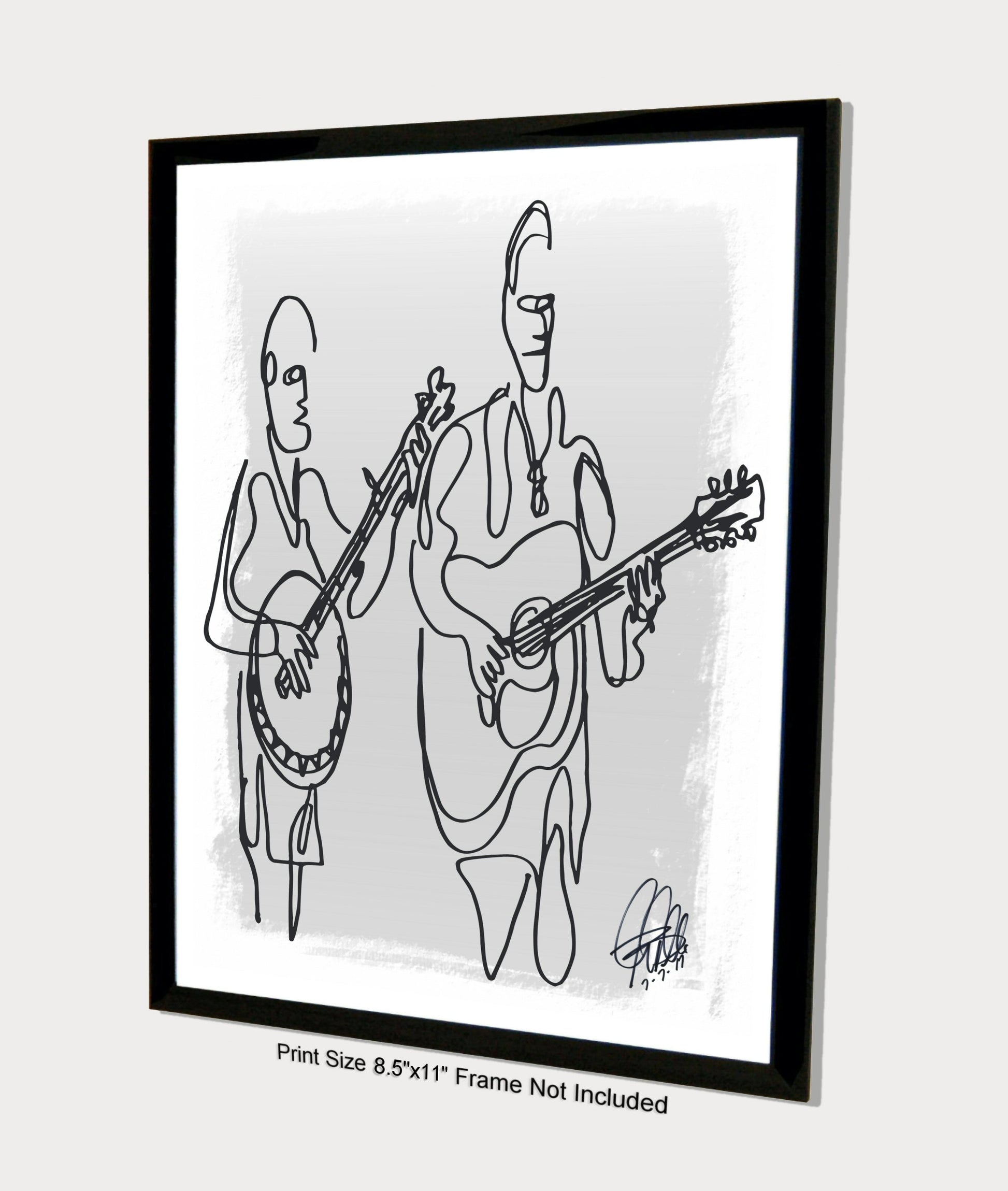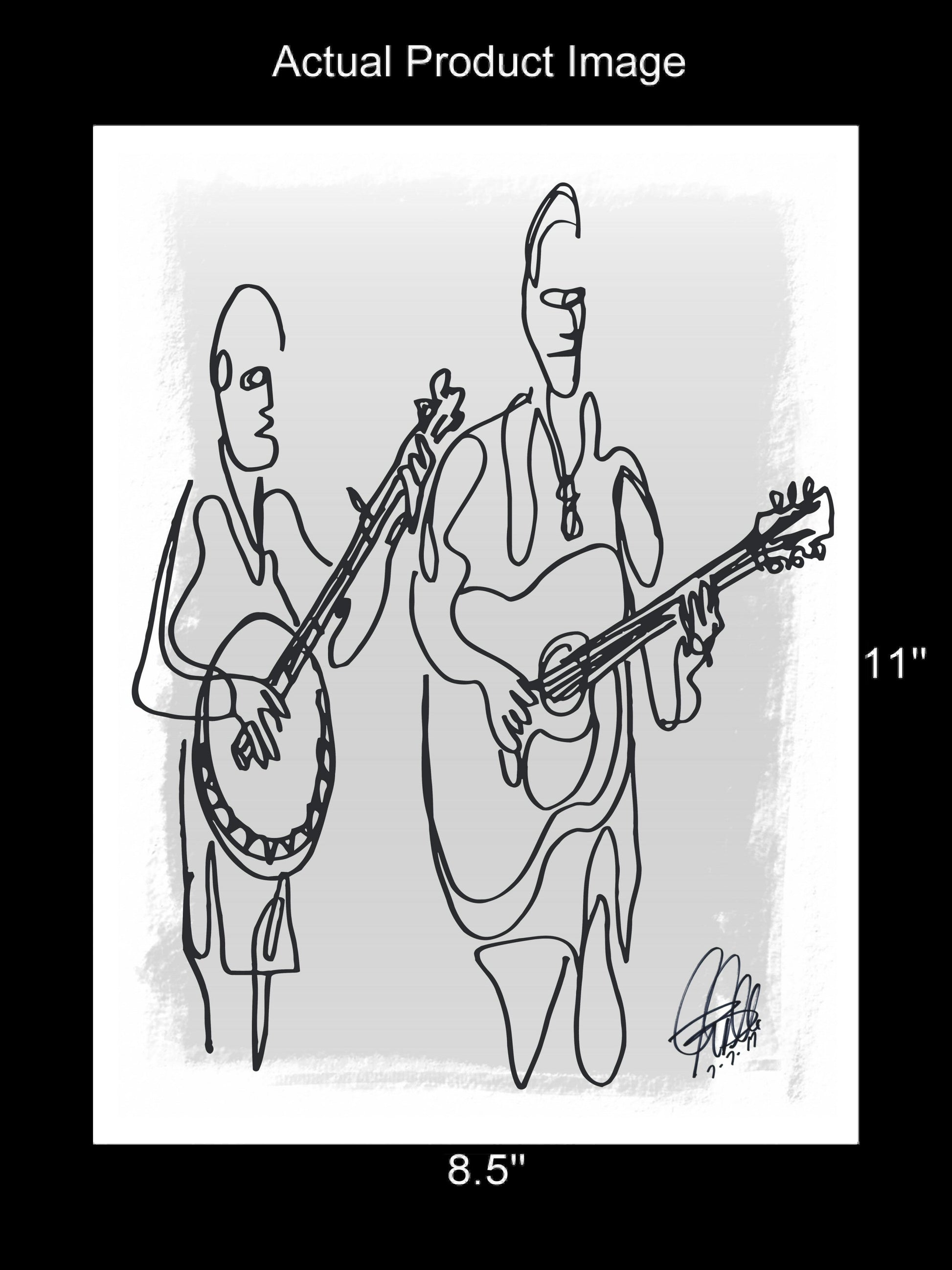 Print from Original Ink Drawing of Bluegrass Players. Printed on 8.5"x11" Premium Gloss High Quality Photo Paper. Print is great for matting and display – Signed & Dated by Artist on front of print - comes with Certificate of Authenticity with Your Name - will be shipped inside 12"x12"x1" sturdy container.