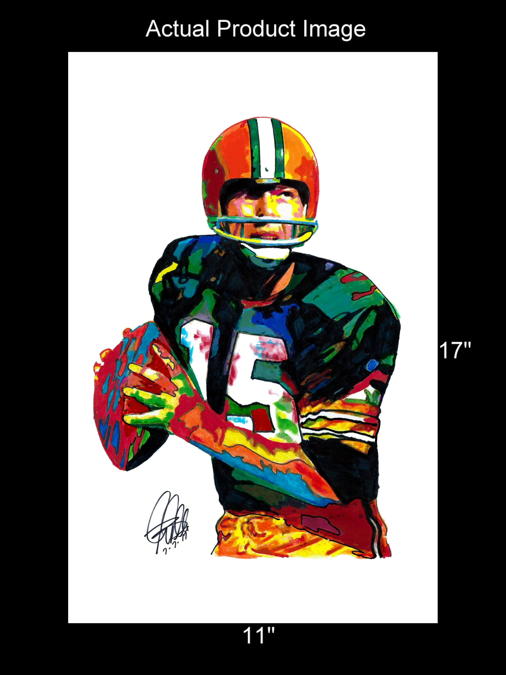 Print from Original Ink Drawing of Bart Starr of the Green Bay Packers. Printed on 11"x17" Premium Gloss High Quality Photo Paper. Print is great for matting and display – Signed & Dated by Artist on front of print - comes with Certificate of Authenticity with Your Name - will be shipped inside 3 x 30" 2 Mil Industrial Poly Bag & 2" x 19" Kraft Mailing Tubes with End Caps - .070: thick