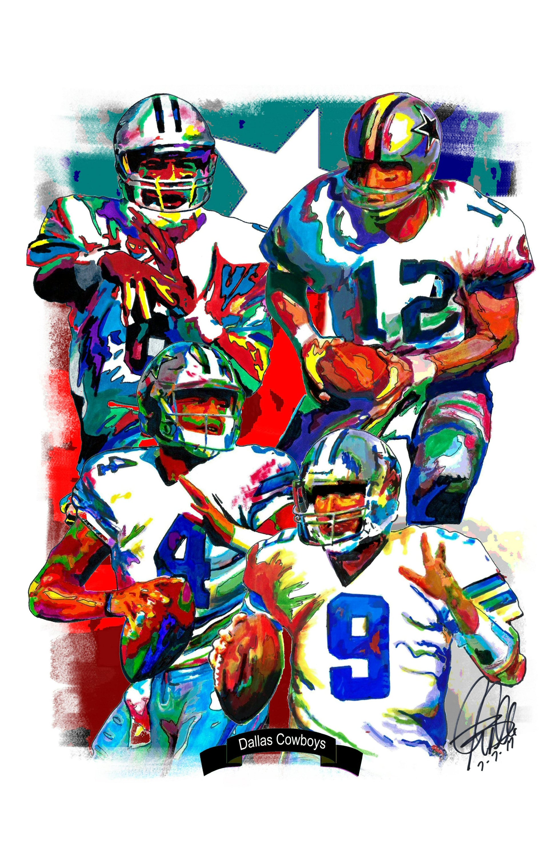 Dallas Cowboys Aikman Staubach Prescott Romo Sports Poster Print Wall Art 11x17