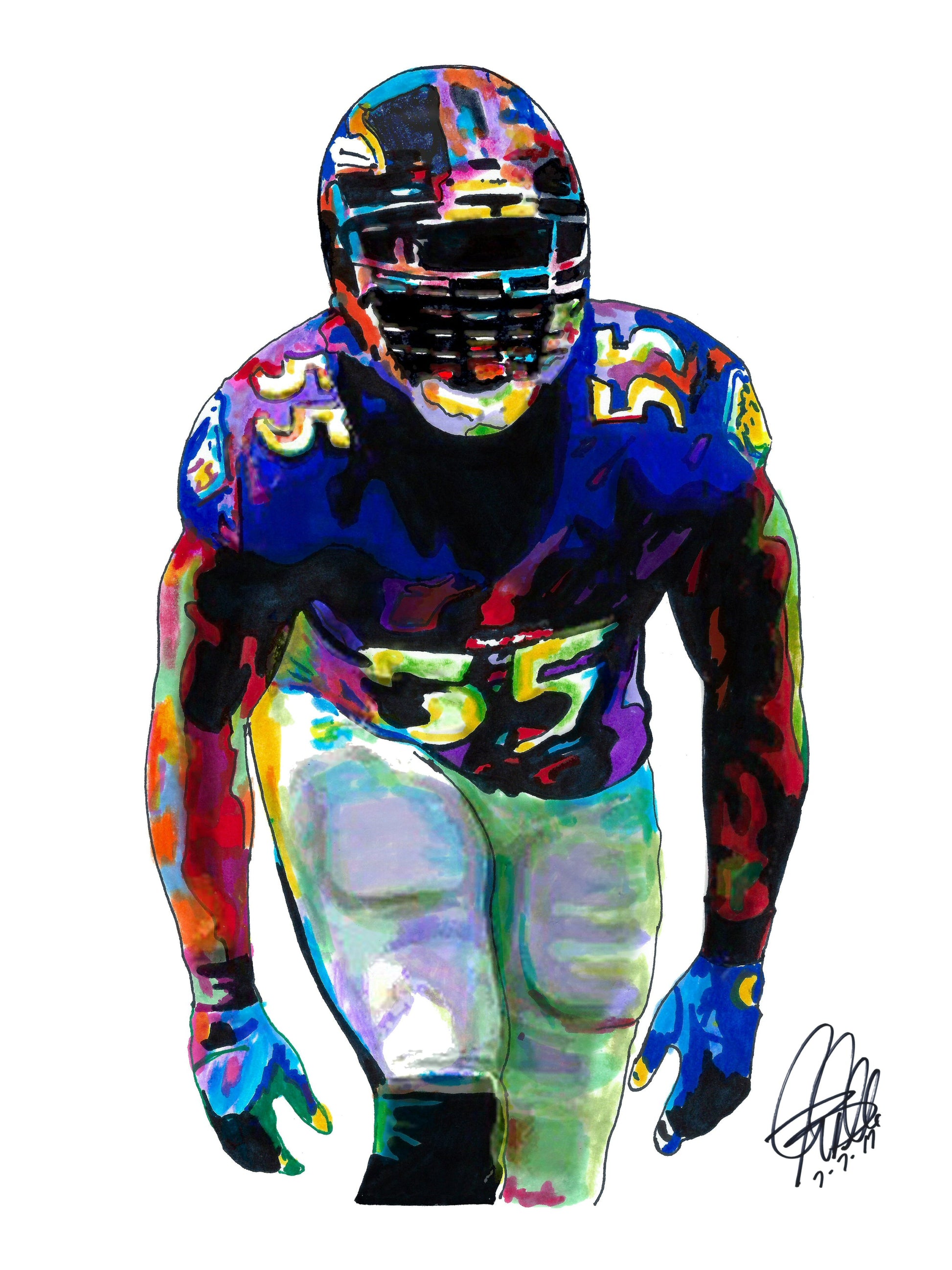 Print from Original Ink Drawing of Terrell Suggs of the Baltimore Ravens. Printed on 8.5"x11" Premium Gloss High Quality Photo Paper. Print is great for matting and display – Signed & Dated by Artist on front of print - comes with Certificate of Authenticity with Your Name - will be shipped inside 12"x12"x1" sturdy container.