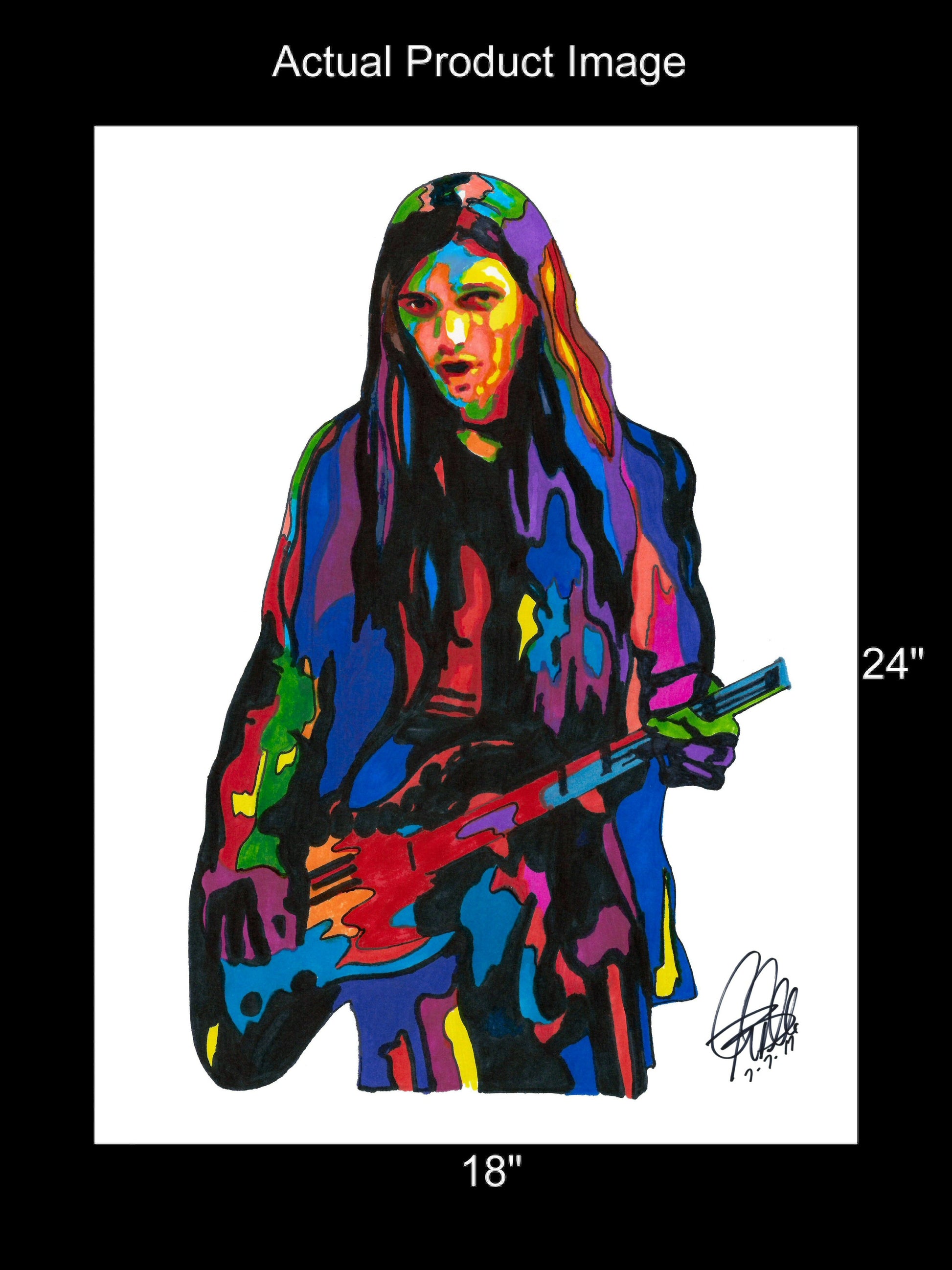 Print from Original Ink Drawing of Dennis Dunaway of Alice Cooper. Printed on 18"x24" Premium Gloss High Quality Photo Paper. Print is great for matting and display – Signed & Dated by Artist on front of print - comes with Certificate of Authenticity with Your Name - will be shipped inside 3 x 30" 2 Mil Industrial Poly Bag & 2" x 19" Kraft Mailing Tubes with End Caps - .070: thick