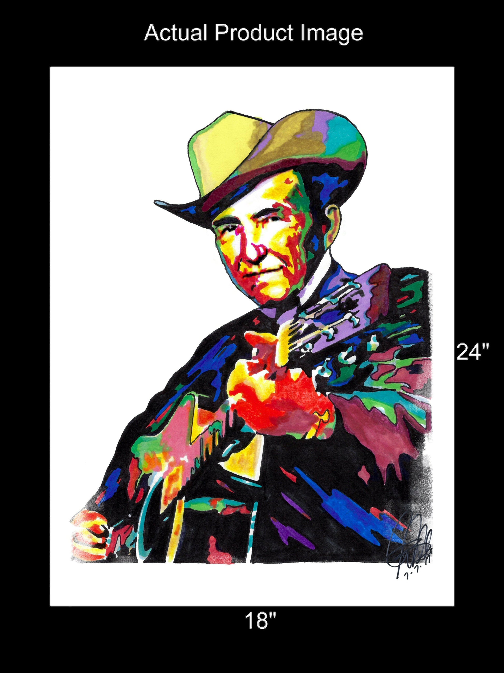 Print from Original Ink Drawing of Lester Flatt. Printed on 18"x24" Premium Gloss High Quality Photo Paper. Print is great for matting and display – Signed & Dated by Artist on front of print - comes with Certificate of Authenticity with Your Name - will be shipped inside 3 x 30" 2 Mil Industrial Poly Bag & 2" x 19" Kraft Mailing Tubes with End Caps - .070: thick