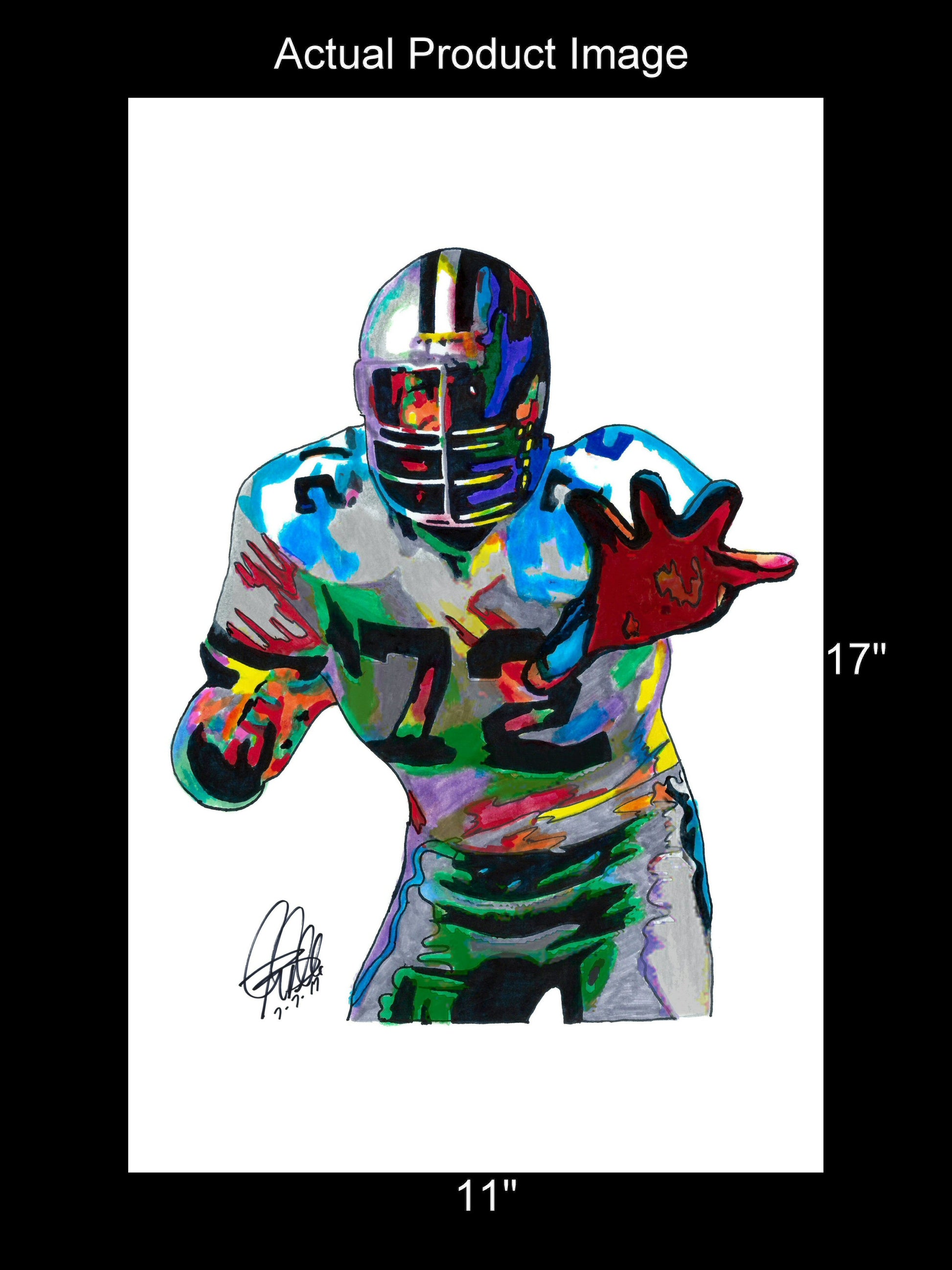 Print from Original Ink Drawing of Ed "Too Tall" Jones of the Dallas Cowboys. Printed on 11"x17" Premium Gloss High Quality Photo Paper. Print is great for matting and display – Signed & Dated by Artist on front of print - comes with Certificate of Authenticity with Your Name - will be shipped inside 3 x 30" 2 Mil Industrial Poly Bag & 2" x 19" Kraft Mailing Tubes with End Caps - .070: thick
