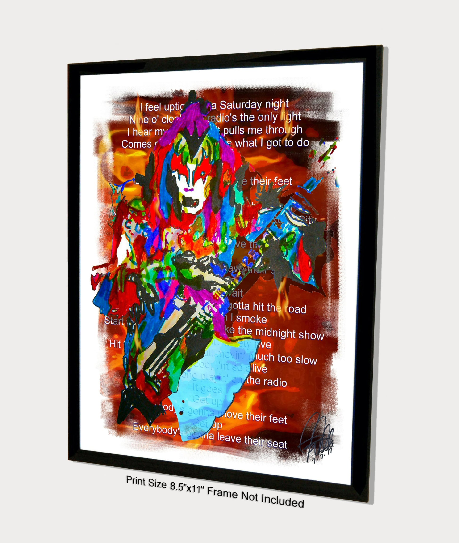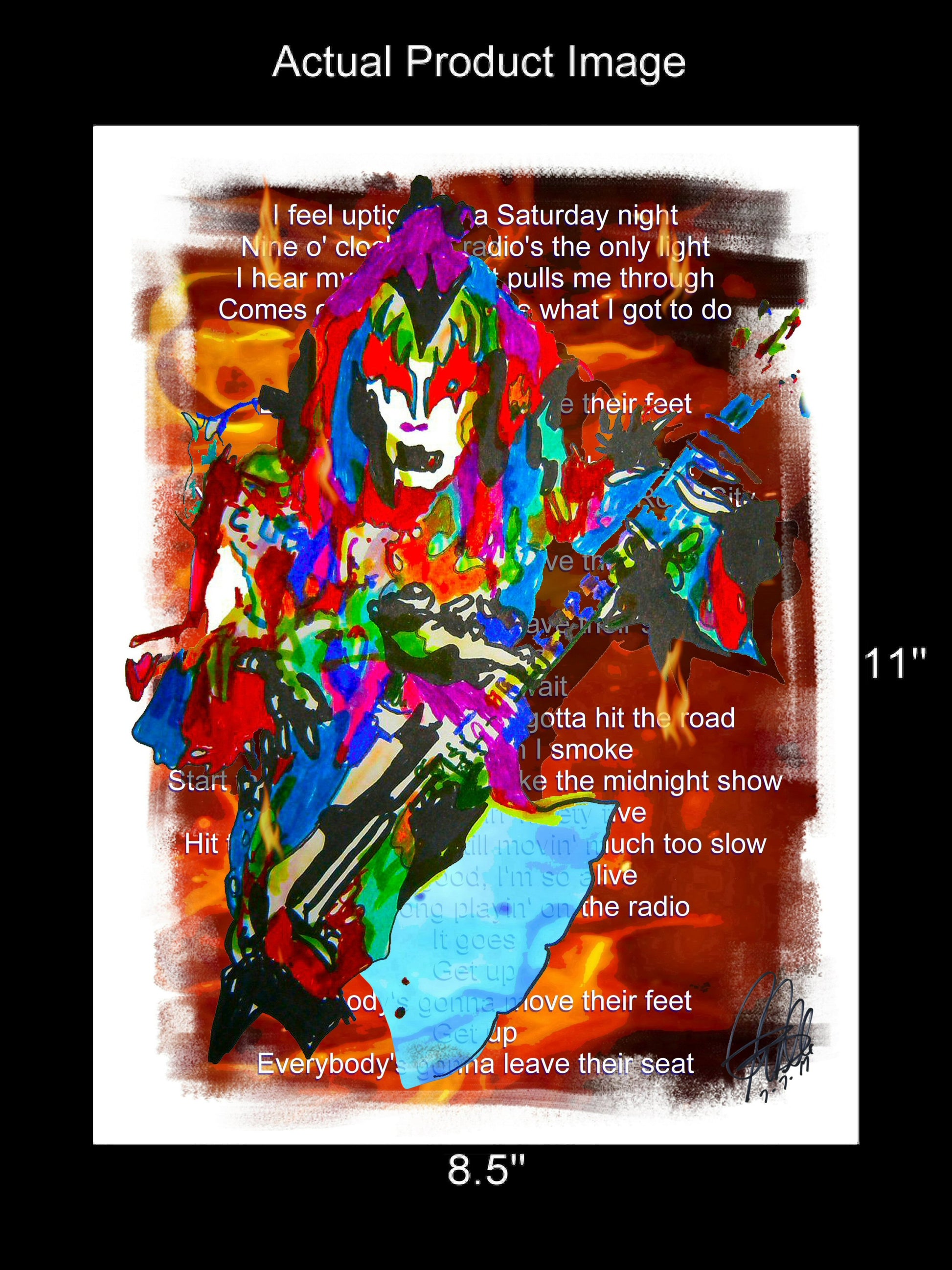 Print from Original Ink Drawing of Gene Simmons of Kiss. Printed on 8.5"x11" Premium Gloss High Quality Photo Paper. Print is great for matting and display – Signed & Dated by Artist on front of print - comes with Certificate of Authenticity with Your Name - will be shipped inside 12"x12"x1" sturdy container.