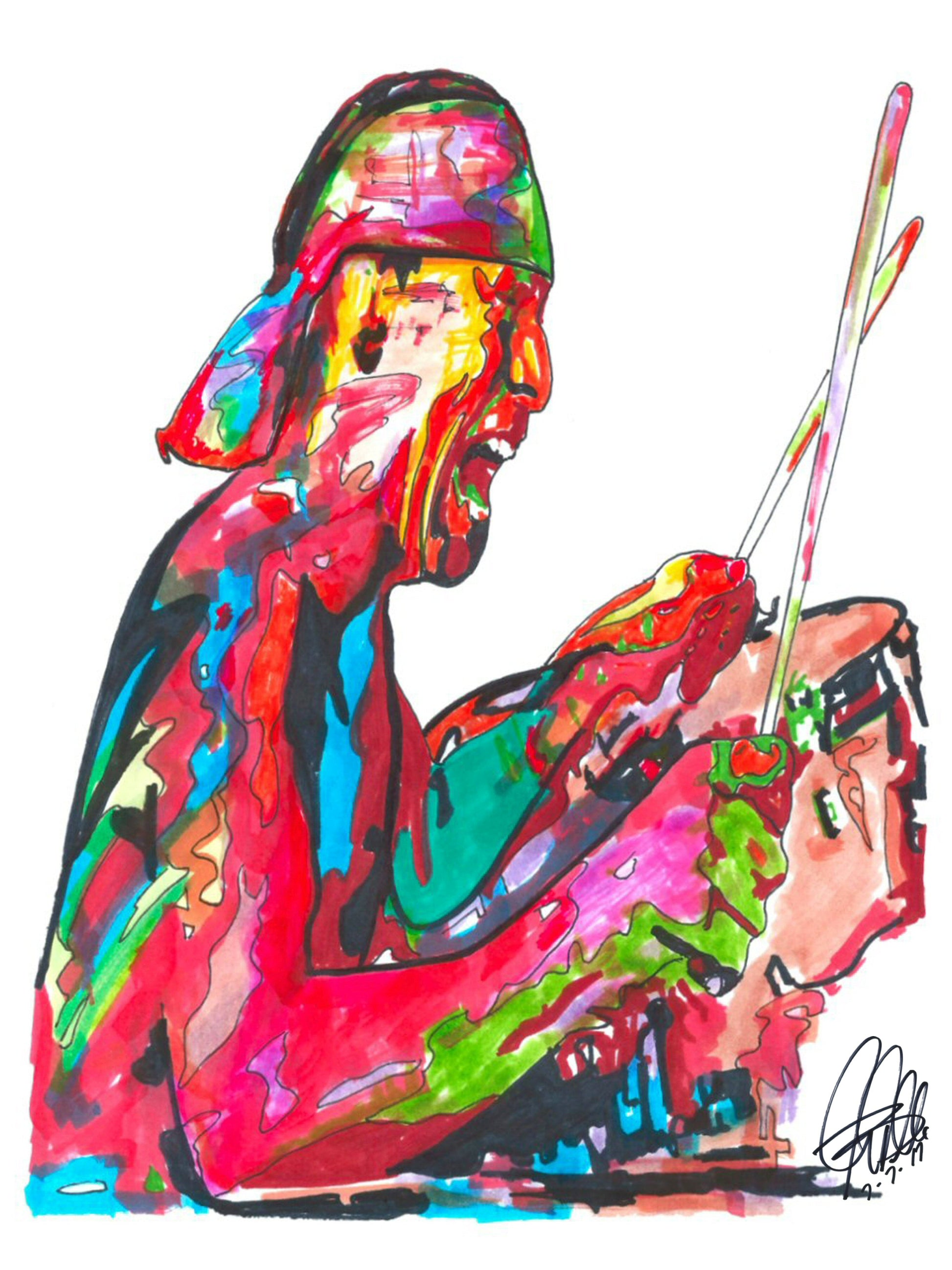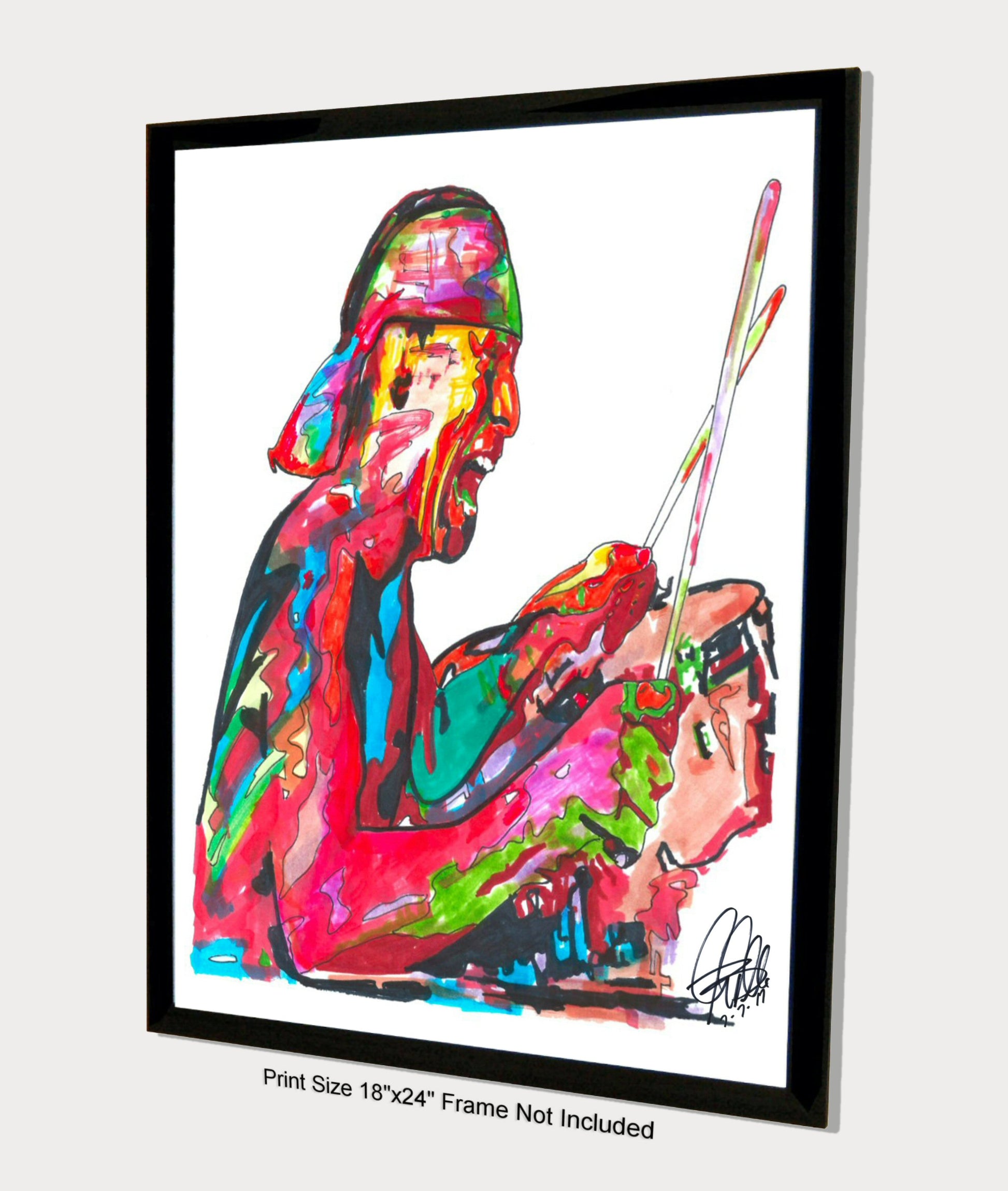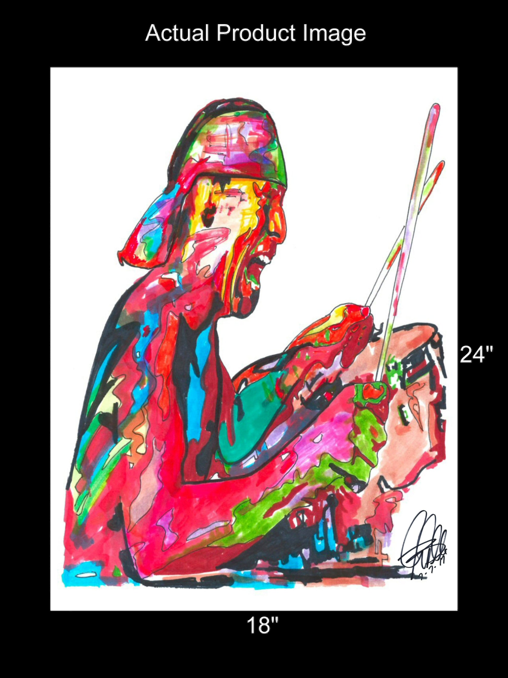 Print from Original Ink Drawing of Alex Van Halen. Printed on 18"x24" Premium Gloss High Quality Photo Paper. Print is great for matting and display – Signed & Dated by Artist on front of print - comes with Certificate of Authenticity with Your Name - will be shipped inside 3 x 30" 2 Mil Industrial Poly Bag & 2" x 19" Kraft Mailing Tubes with End Caps - .070: thick