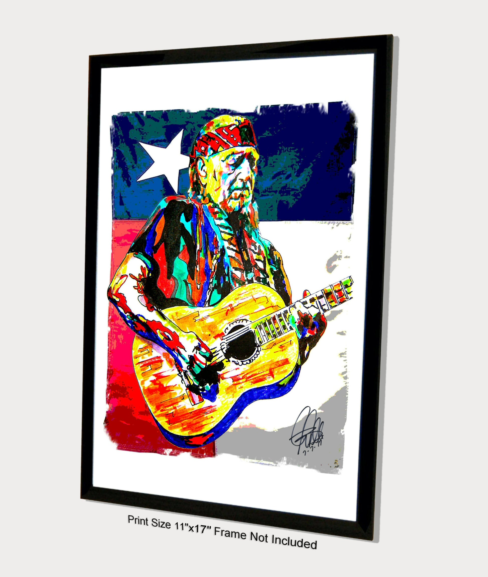Willie Nelson Singer Guitar Country Music Poster Print Wall Art 11x17