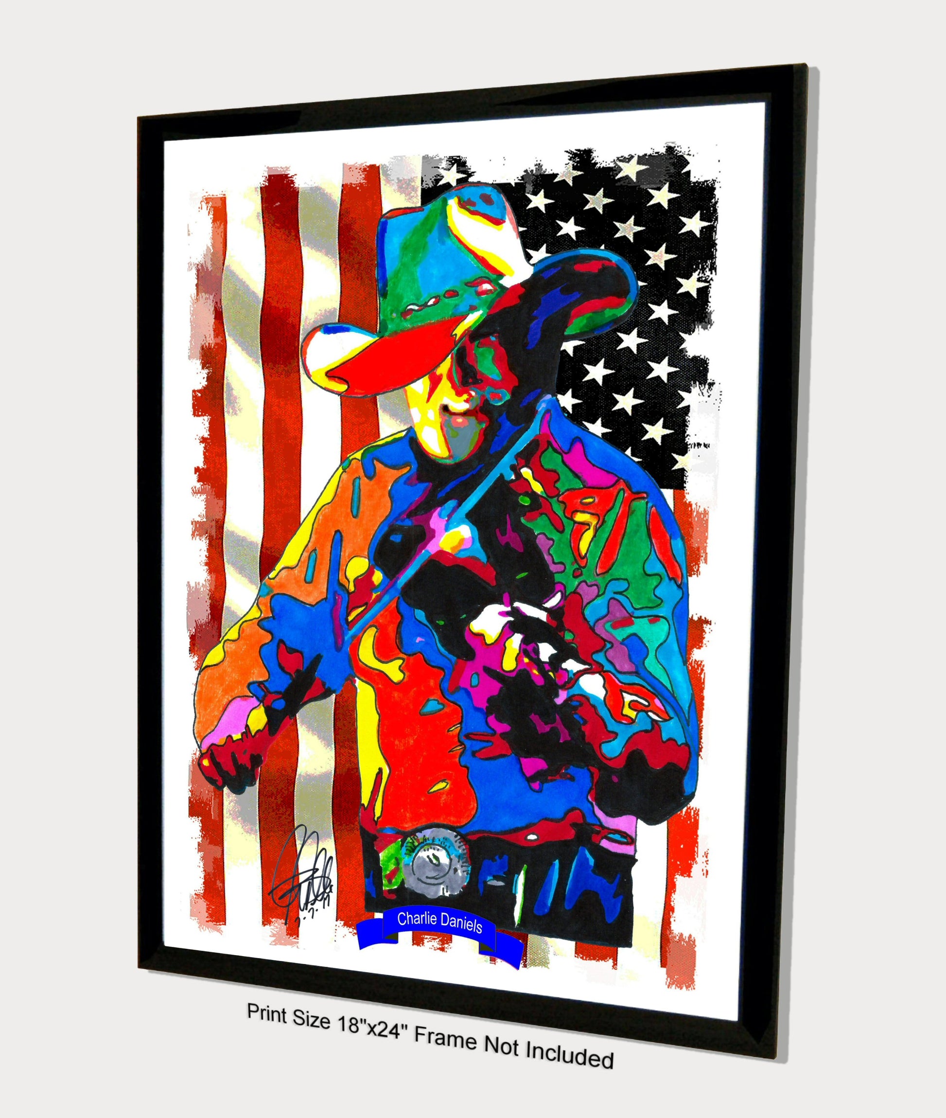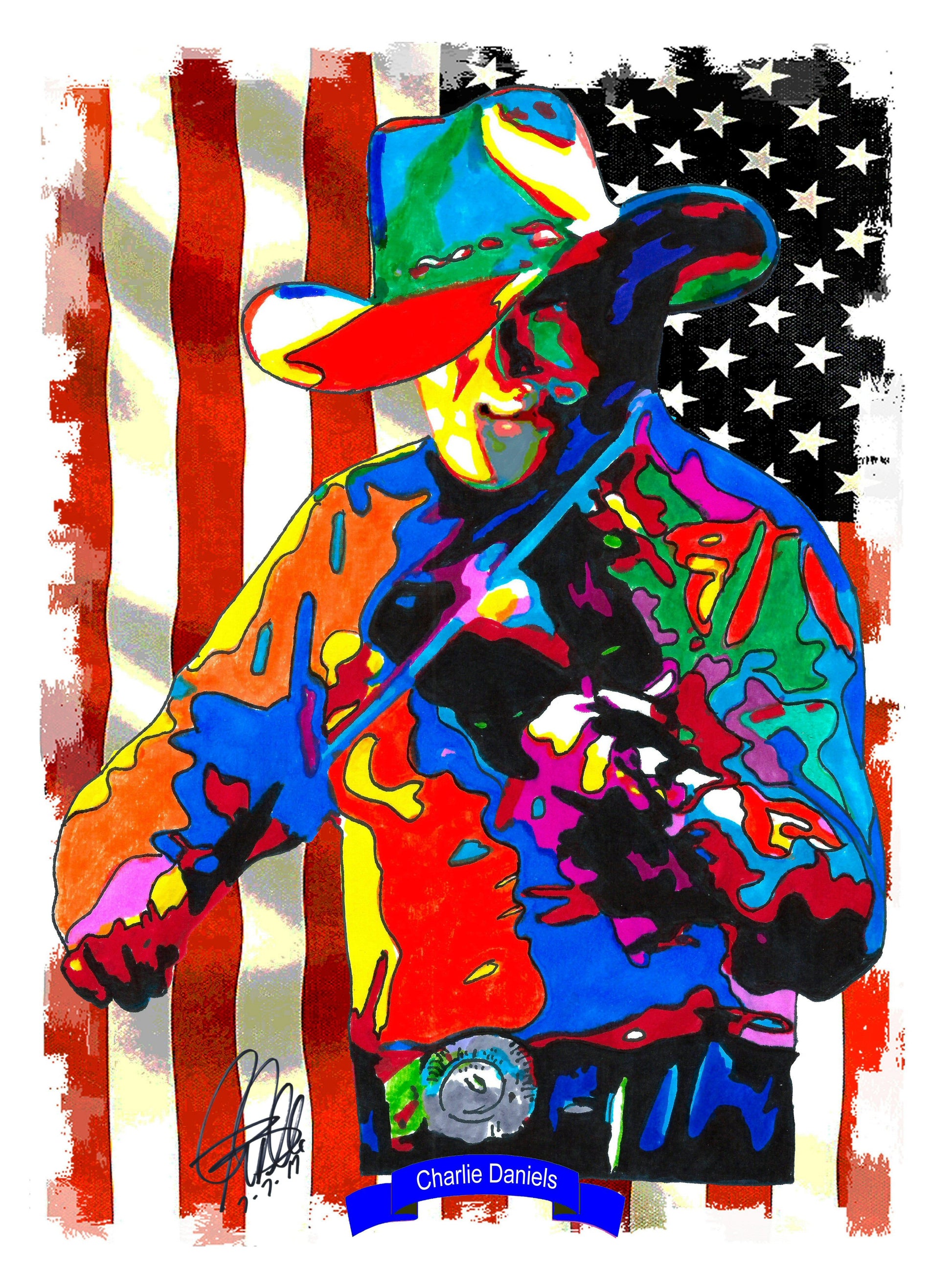 Print from Original Ink Drawing of Charlie Daniels. Printed on 18"x24" Premium Gloss High Quality Photo Paper. Print is great for matting and display – Signed & Dated by Artist on front of print - comes with Certificate of Authenticity with Your Name - will be shipped inside 3 x 30" 2 Mil Industrial Poly Bag & 2" x 19" Kraft Mailing Tubes with End Caps - .070: thick