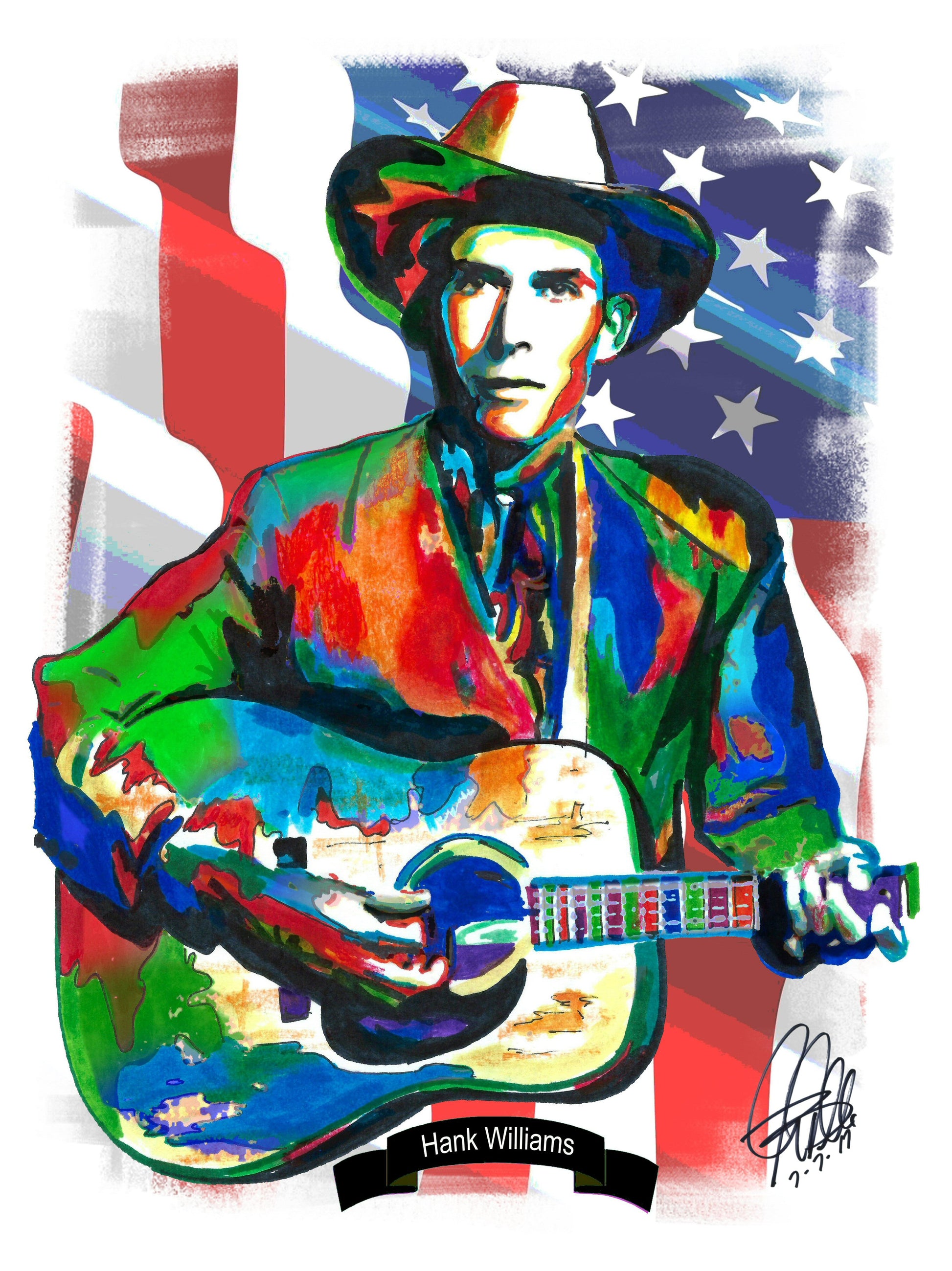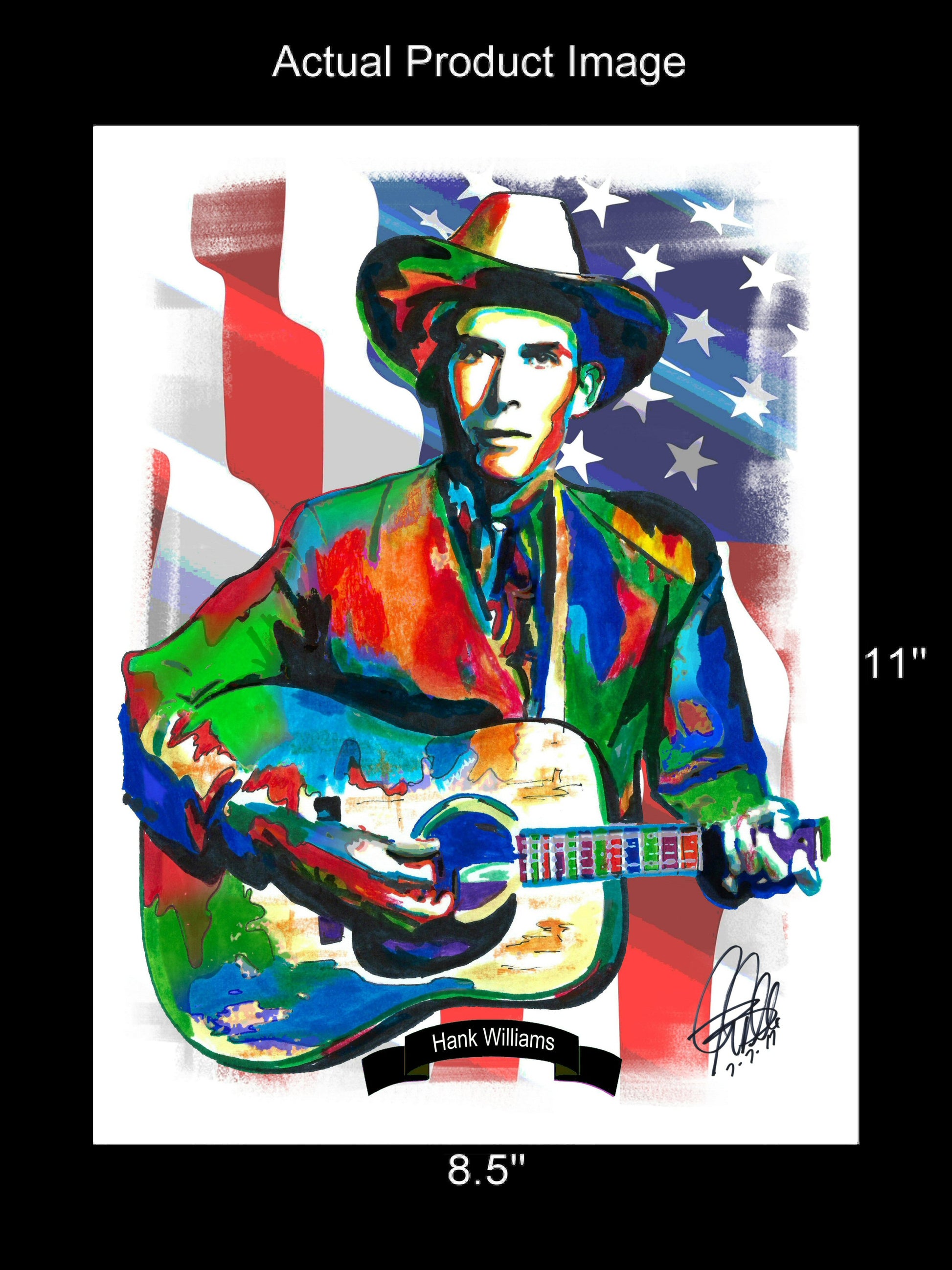 Print from Original Ink Drawing of Hank Williams. Printed on 8.5"x11" Premium Gloss High Quality Photo Paper. Print is great for matting and display – Signed & Dated by Artist on front of print - comes with Certificate of Authenticity with Your Name - will be shipped inside 12"x12"x1" sturdy container.