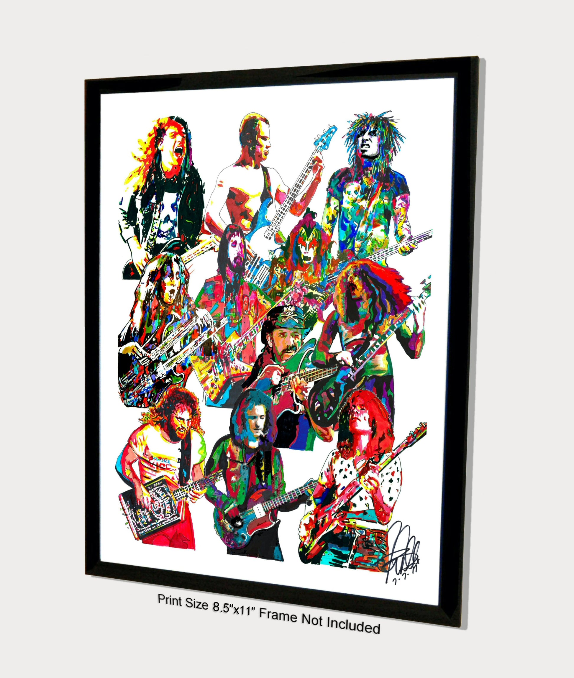 Bass Players Entwistle Flea Lemmy Sixx Rock Music Poster Print Wall Art 8.5x11