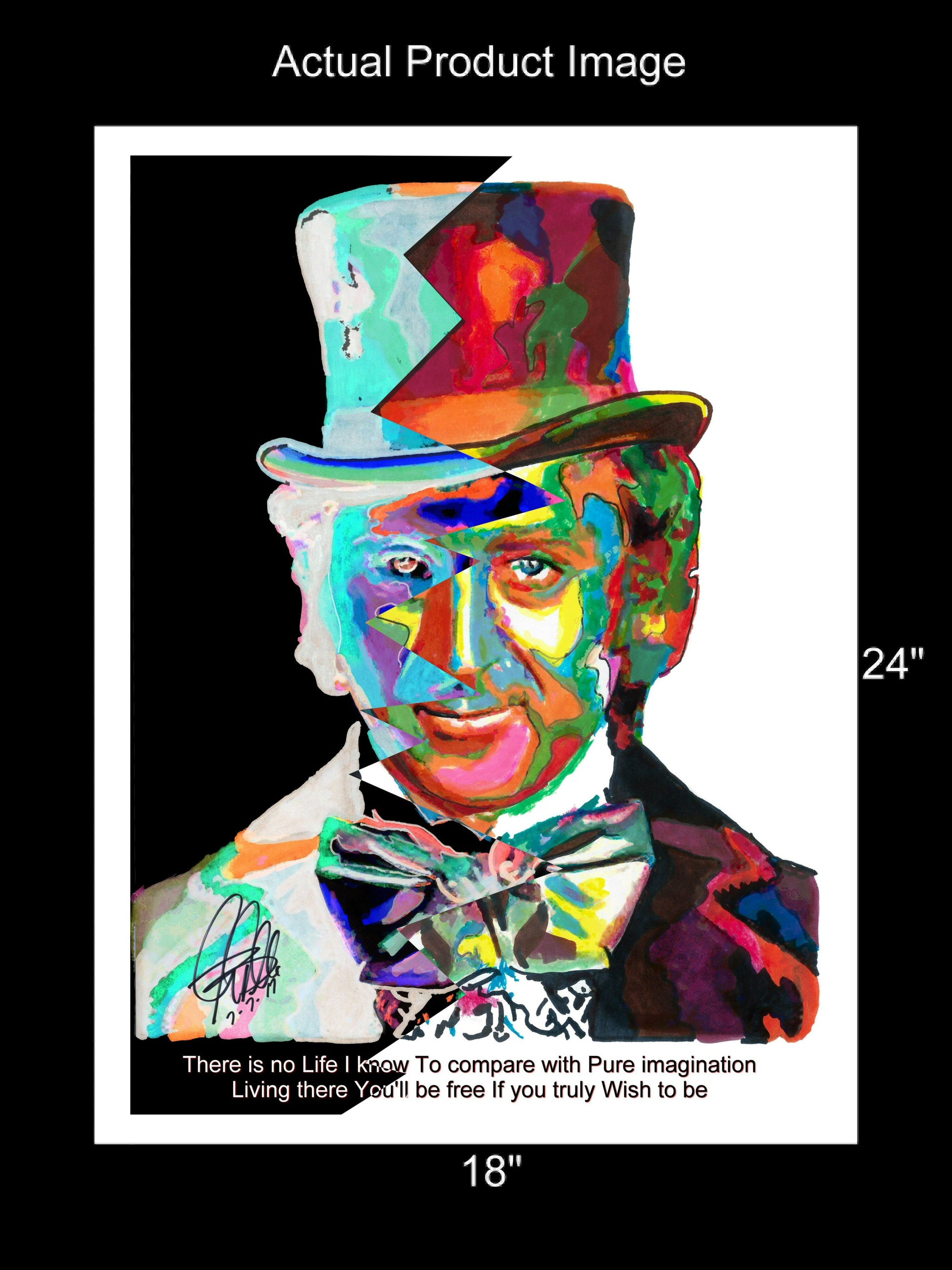 Print from Original Ink Drawing of Willy Wonka (Gene Wilder). Printed on 18"x24" Premium Gloss High Quality Photo Paper. Print is great for matting and display – Signed & Dated by Artist on front of print - comes with Certificate of Authenticity with Your Name - will be shipped inside 3 x 30" 2 Mil Industrial Poly Bag & 2" x 19" Kraft Mailing Tubes with End Caps - .070: thick