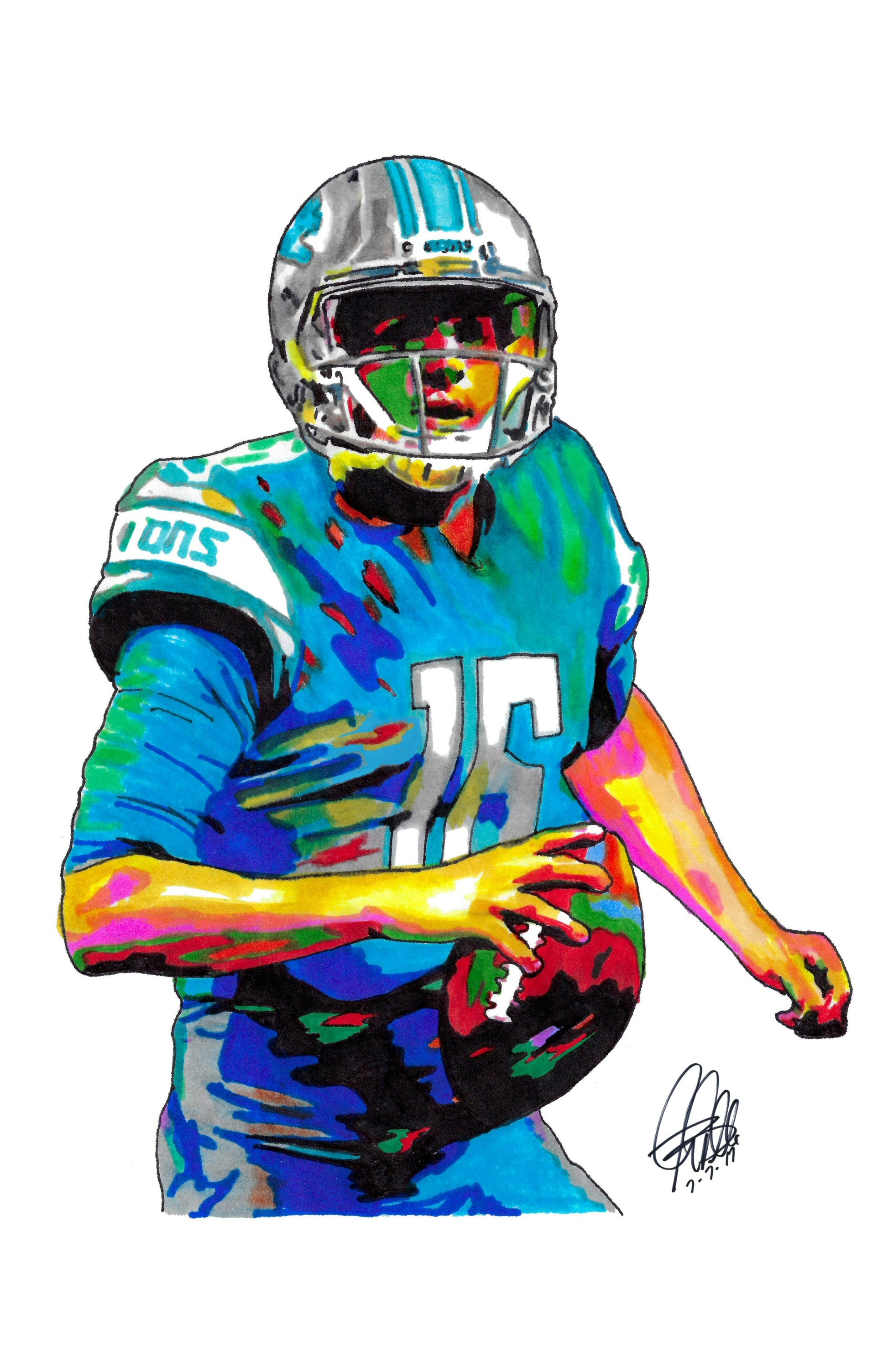 Print from Original Ink Drawing of Jared Goff of the Detroit Lions. Printed on 11"x17" Premium Gloss High Quality Photo Paper. Print is great for matting and display – Signed & Dated by Artist on front of print - comes with Certificate of Authenticity with Your Name - will be shipped inside 3 x 30" 2 Mil Industrial Poly Bag & 2" x 19" Kraft Mailing Tubes with End Caps - .070: thick