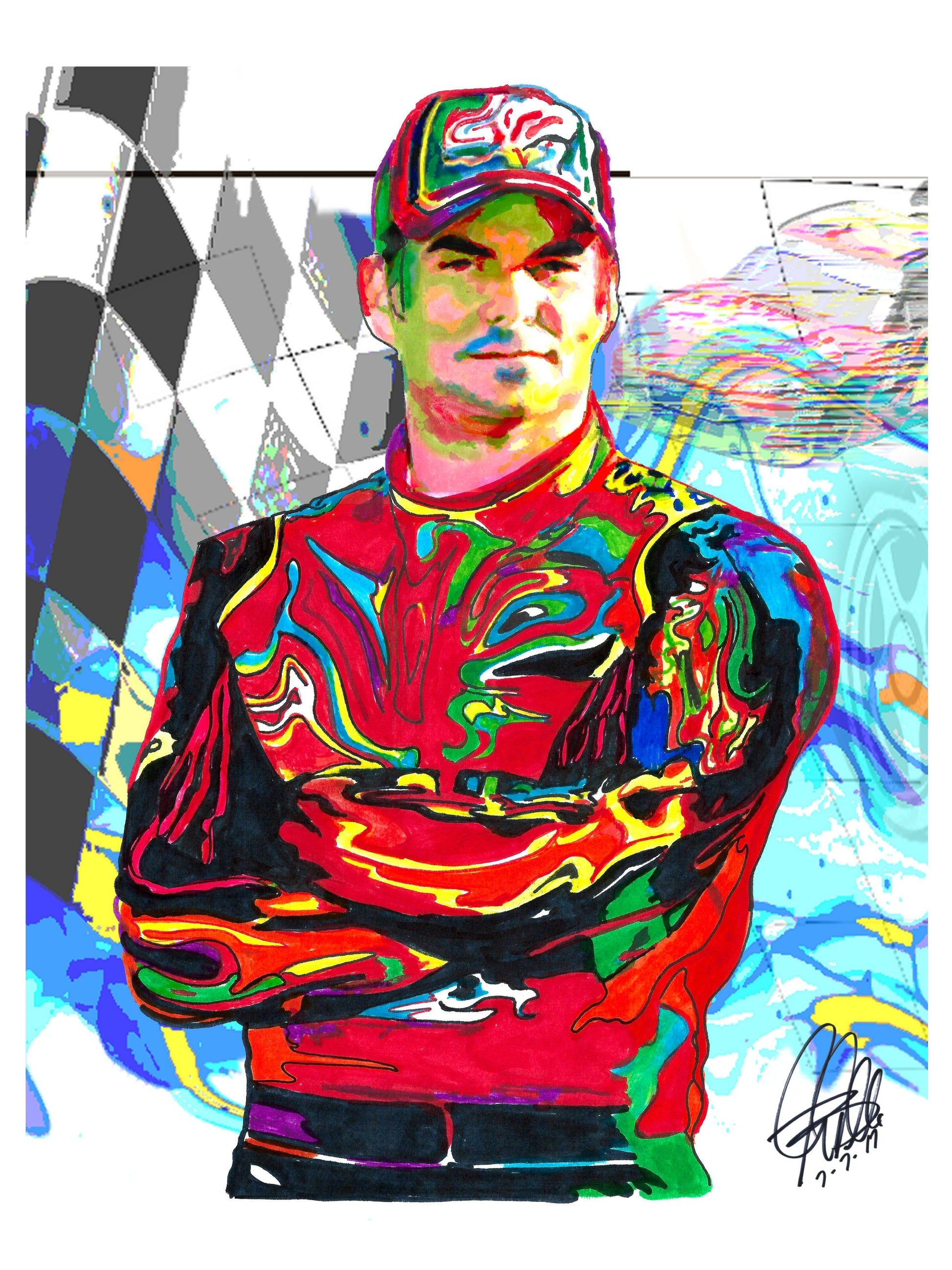 Print from Original Ink Drawing of Jeff Gordon. Printed on 18"x24" Premium Gloss High Quality Photo Paper. Print is great for matting and display – Signed & Dated by Artist on front of print - comes with Certificate of Authenticity with Your Name - will be shipped inside 3 x 30" 2 Mil Industrial Poly Bag & 2" x 19" Kraft Mailing Tubes with End Caps - .070: thick