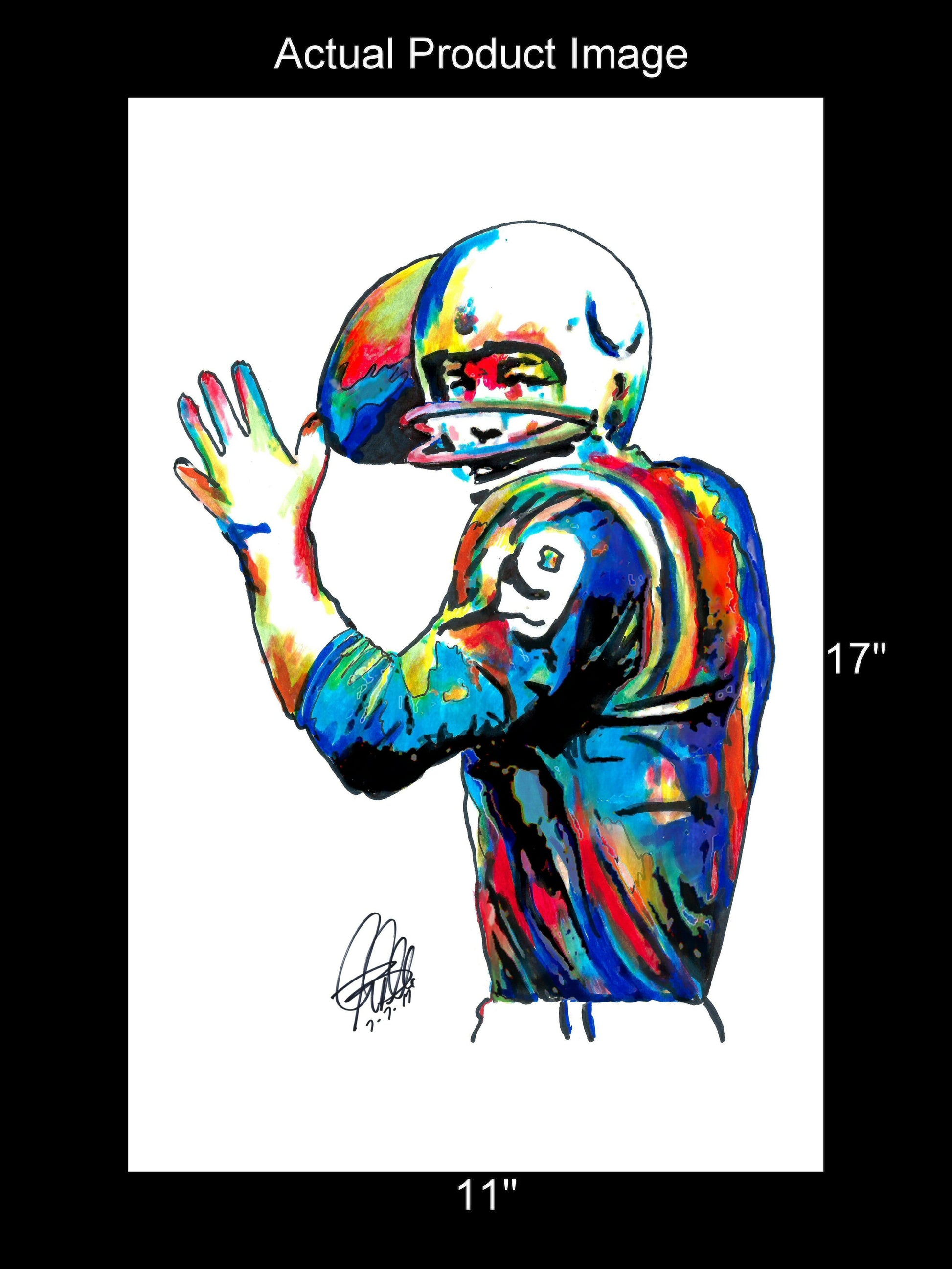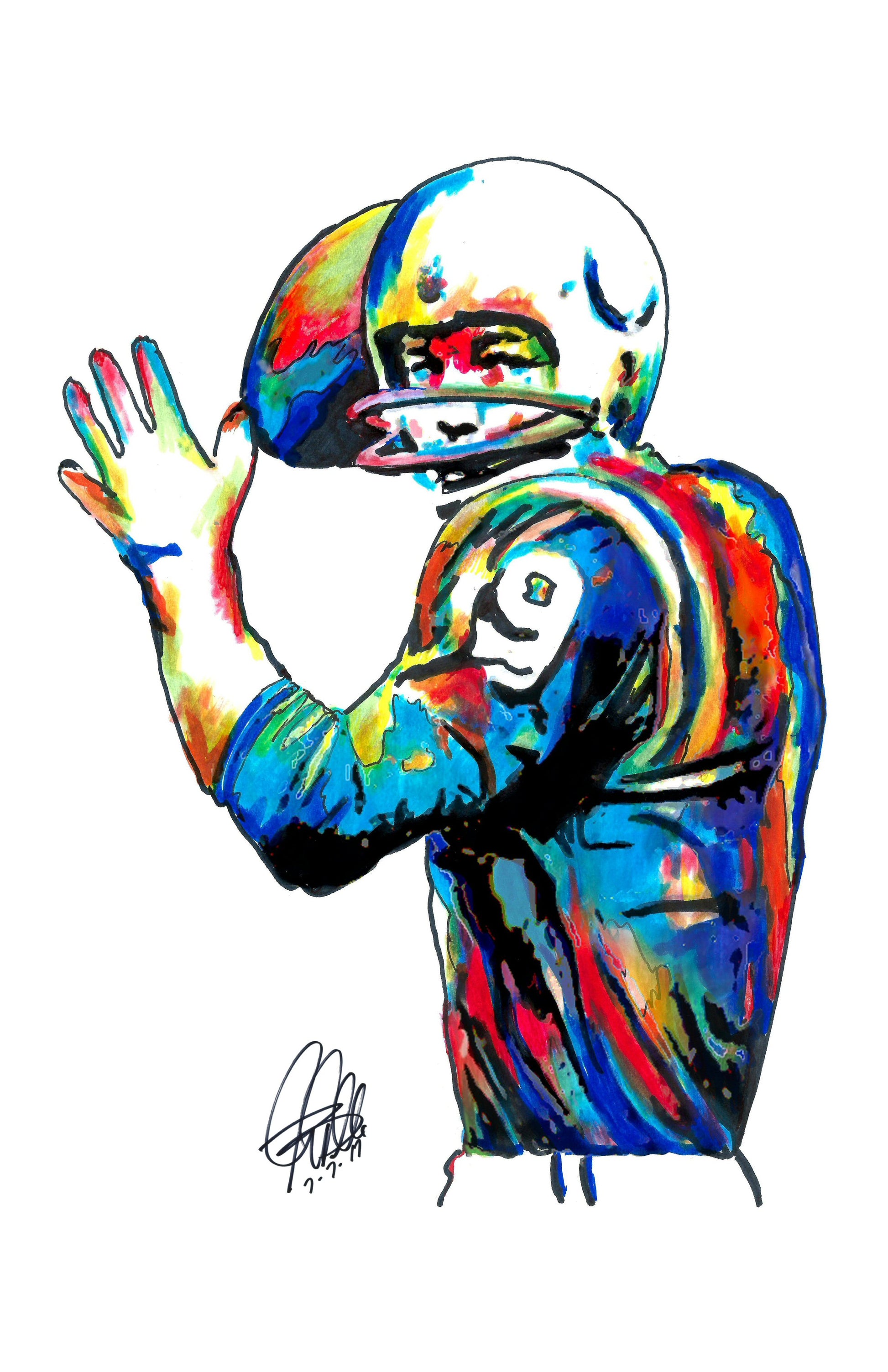 Print from Original Ink Drawing of Johnny Unitas of the Baltimore Colts. Printed on 11"x17" Premium Gloss High Quality Photo Paper. Print is great for matting and display – Signed & Dated by Artist on front of print - comes with Certificate of Authenticity with Your Name - will be shipped inside 3 x 30" 2 Mil Industrial Poly Bag & 2" x 19" Kraft Mailing Tubes with End Caps - .070: thick