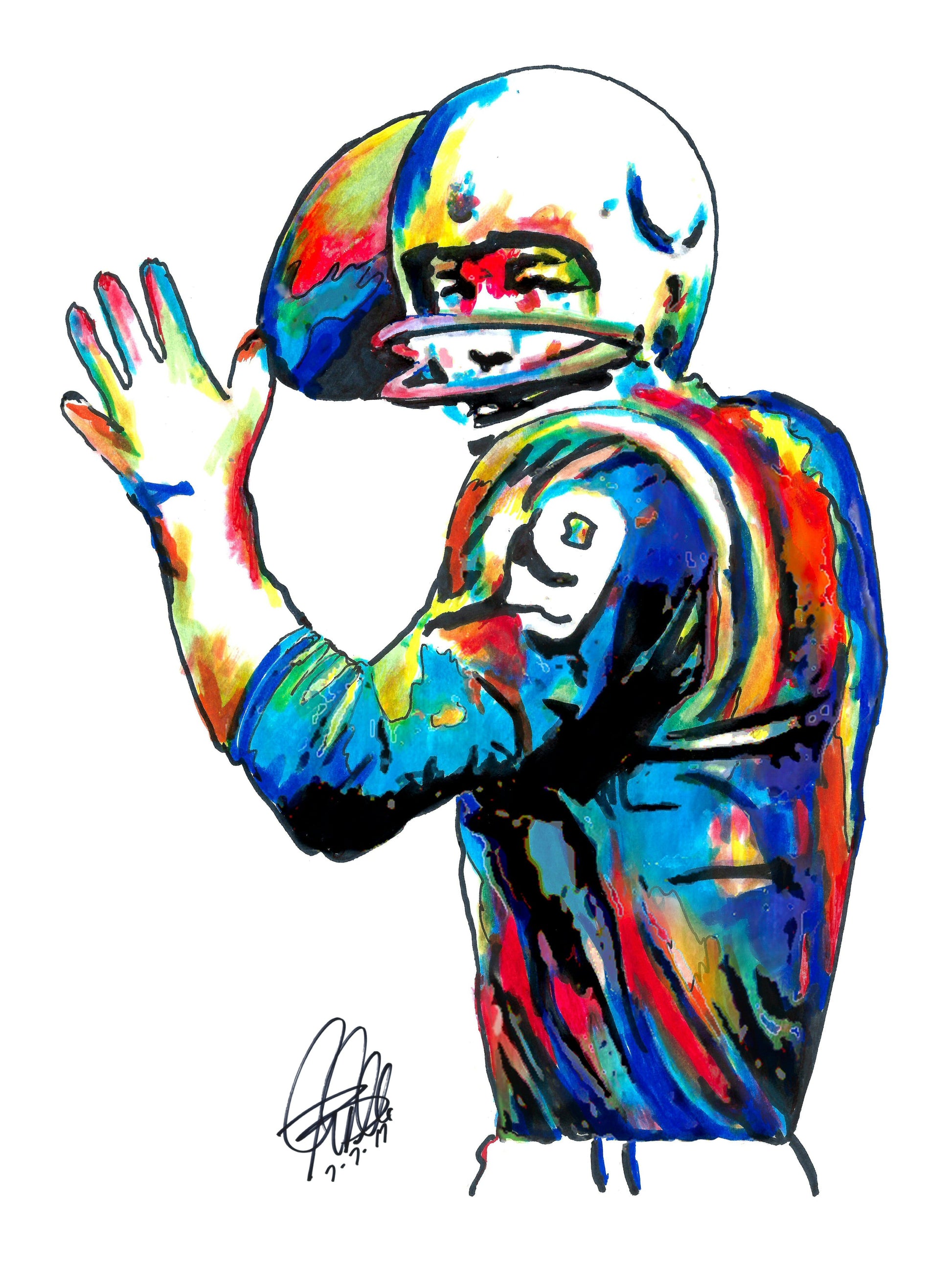 Print from Original Ink Drawing of Johnny Unitas of the Baltimore Colts. Printed on 18"x24" Premium Gloss High Quality Photo Paper. Print is great for matting and display – Signed & Dated by Artist on front of print - comes with Certificate of Authenticity with Your Name - will be shipped inside 3 x 30" 2 Mil Industrial Poly Bag & 2" x 19" Kraft Mailing Tubes with End Caps - .070: thick