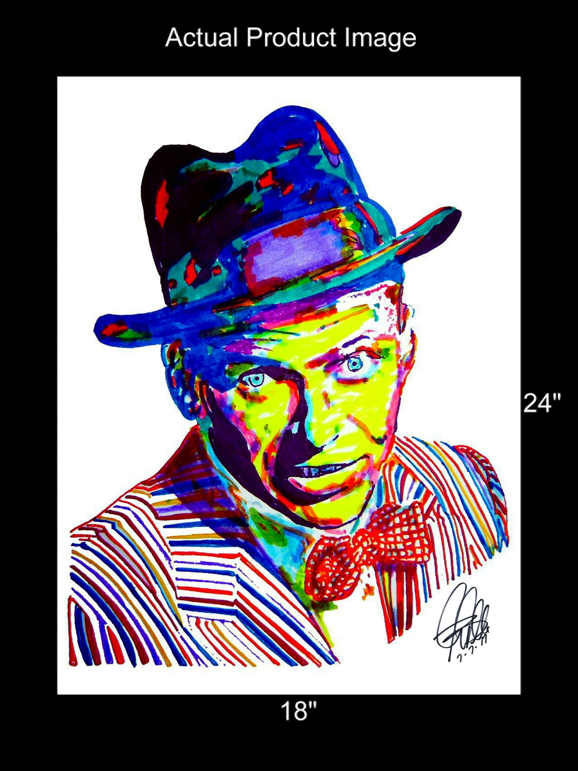 Print from Original Ink Drawing of Frank Sinatra. Printed on 18"x24" Premium Gloss High Quality Photo Paper. Print is great for matting and display – Signed & Dated by Artist on front of print - comes with Certificate of Authenticity with Your Name - will be shipped inside 3 x 30" 2 Mil Industrial Poly Bag & 2" x 19" Kraft Mailing Tubes with End Caps - .070: thick
