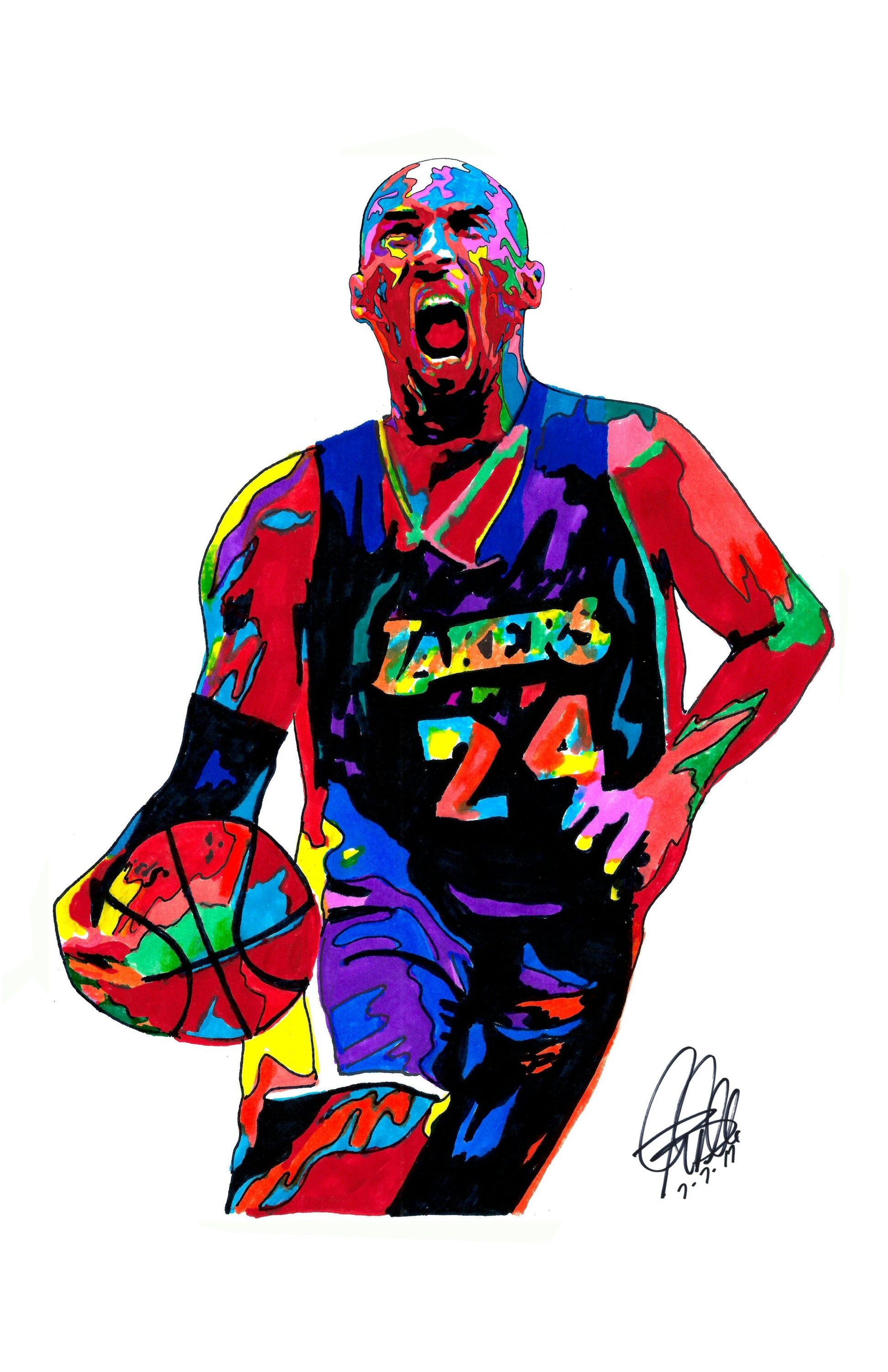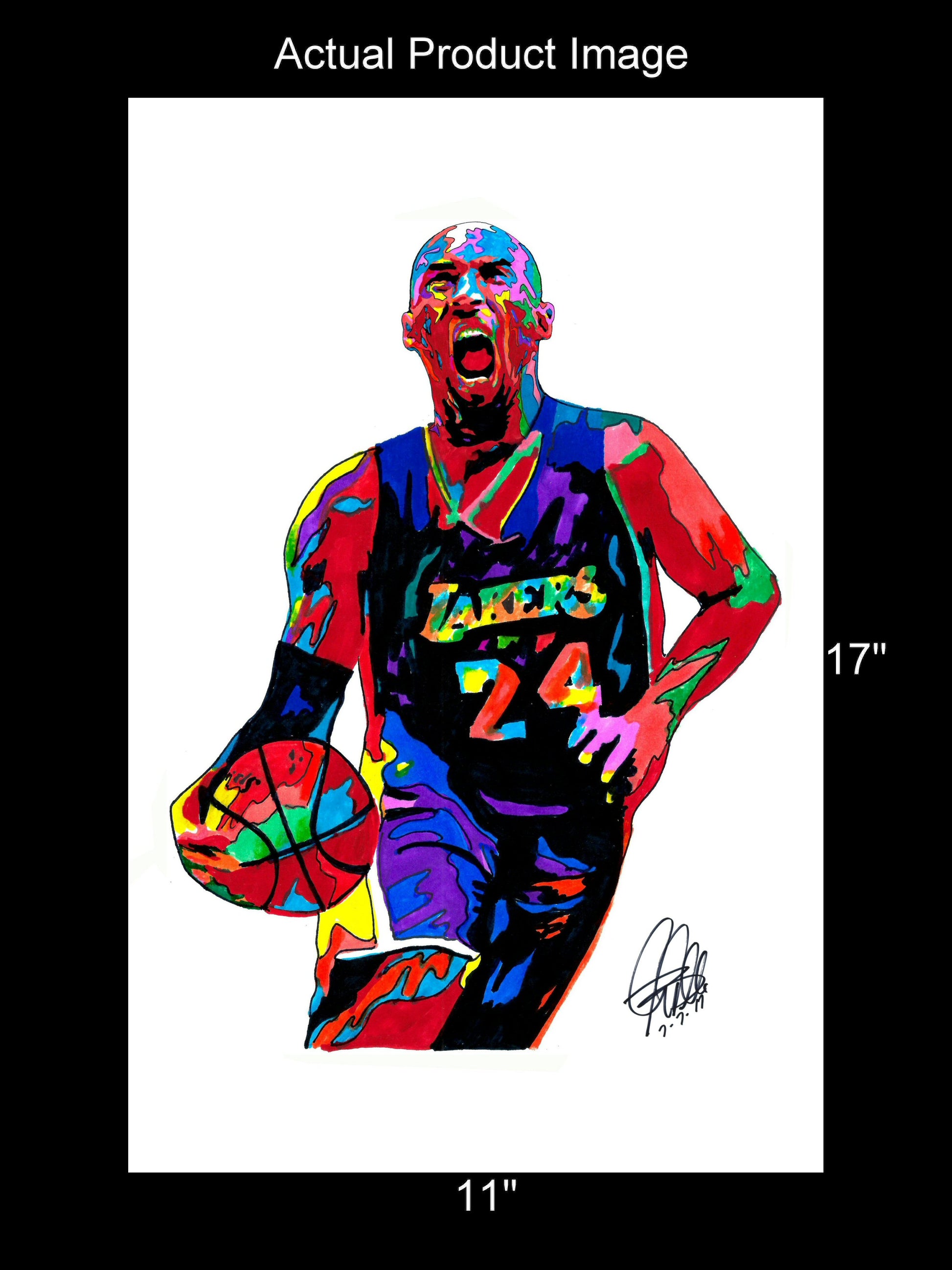 Print from Original Ink Drawing of Kobe Bryant of the Los Angeles Lakers. Printed on 11"x17" Premium Gloss High Quality Photo Paper. Print is great for matting and display – Signed & Dated by Artist on front of print - comes with Certificate of Authenticity with Your Name - will be shipped inside 3 x 30" 2 Mil Industrial Poly Bag & 2" x 19" Kraft Mailing Tubes with End Caps - .070: thick