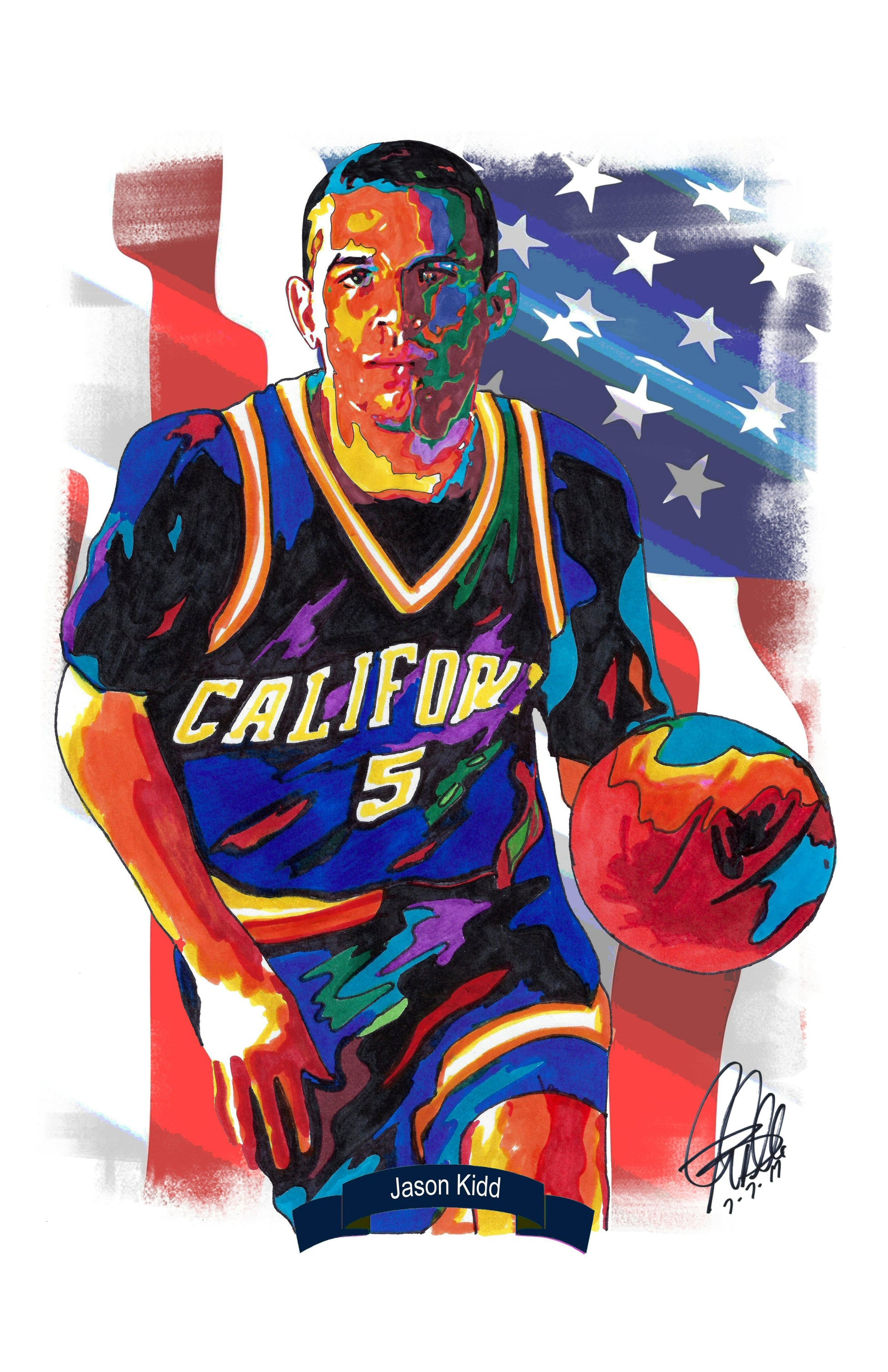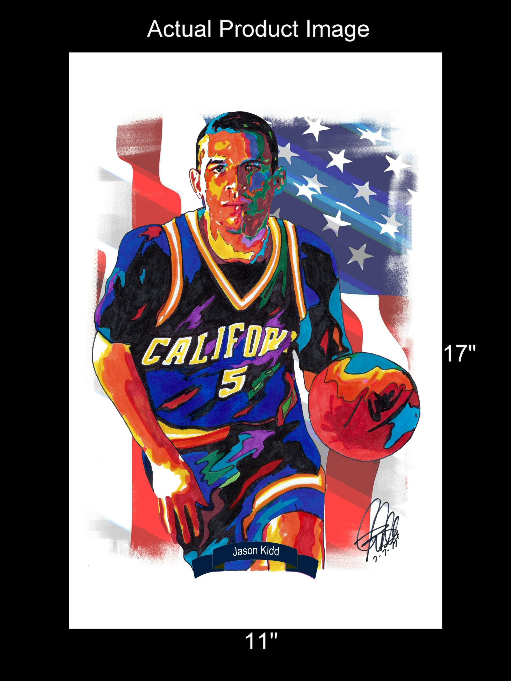 Print from Original Ink Drawing of Jason Kidd of the California Golden Bears. Printed on 11"x17" Premium Gloss High Quality Photo Paper. Print is great for matting and display – Signed & Dated by Artist on front of print - comes with Certificate of Authenticity with Your Name - will be shipped inside 3 x 30" 2 Mil Industrial Poly Bag & 2" x 19" Kraft Mailing Tubes with End Caps - .070: thick