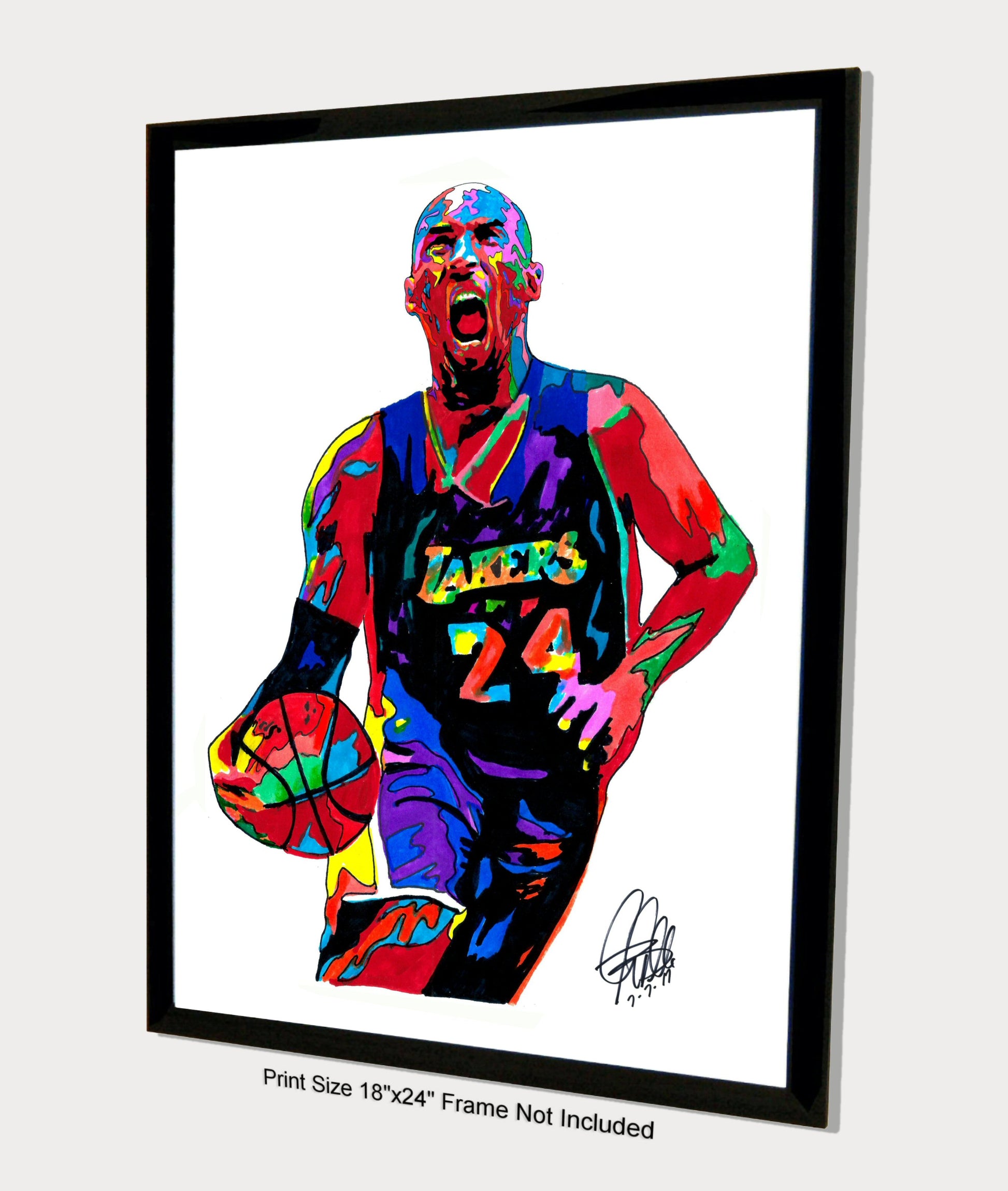 Kobe Bryant Los Angeles Lakers Basketball Sports Poster Print Wall Art 18x24