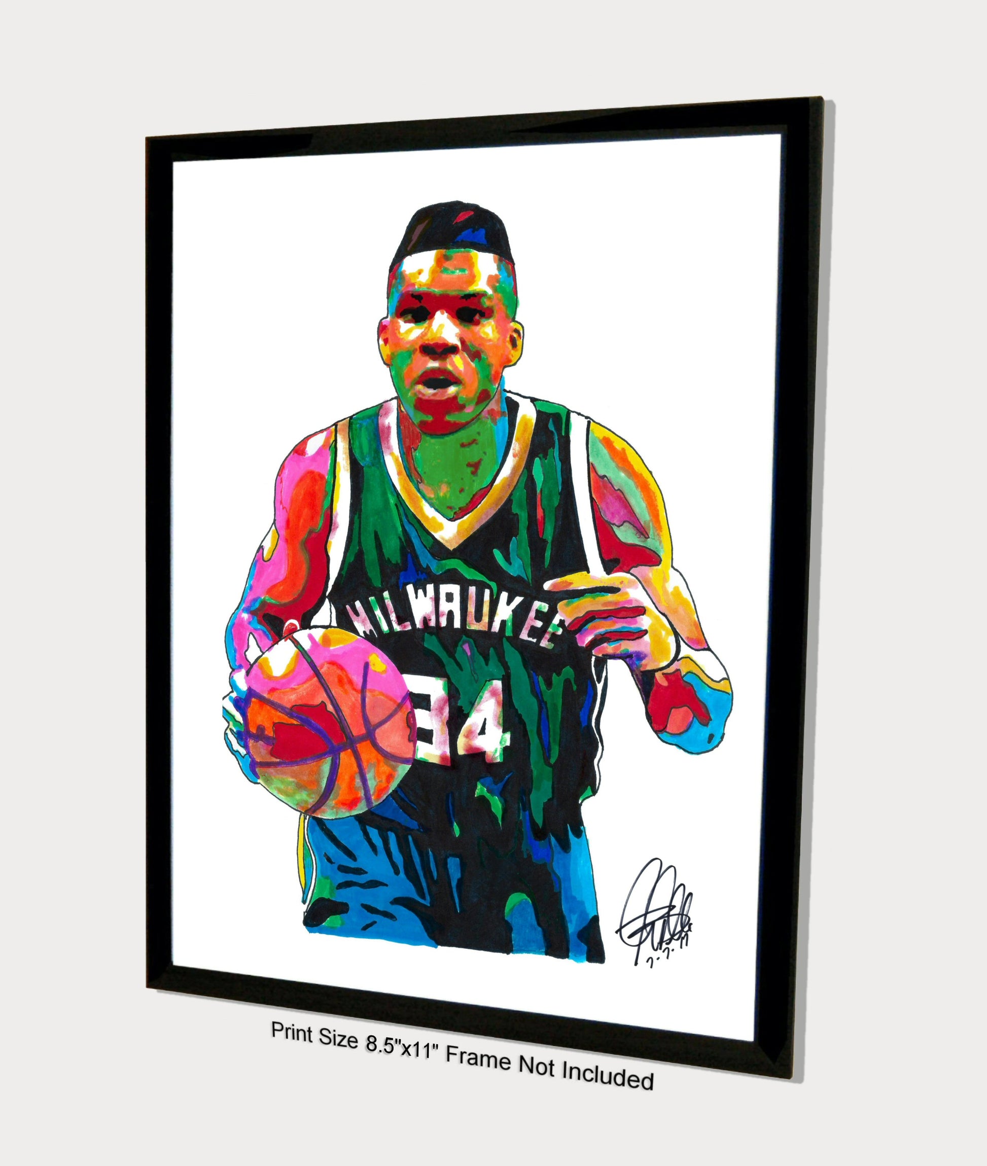 Giannis Antetokounmpo Milwaukee Bucks Basketball Poster Print Wall Art 8.5x11