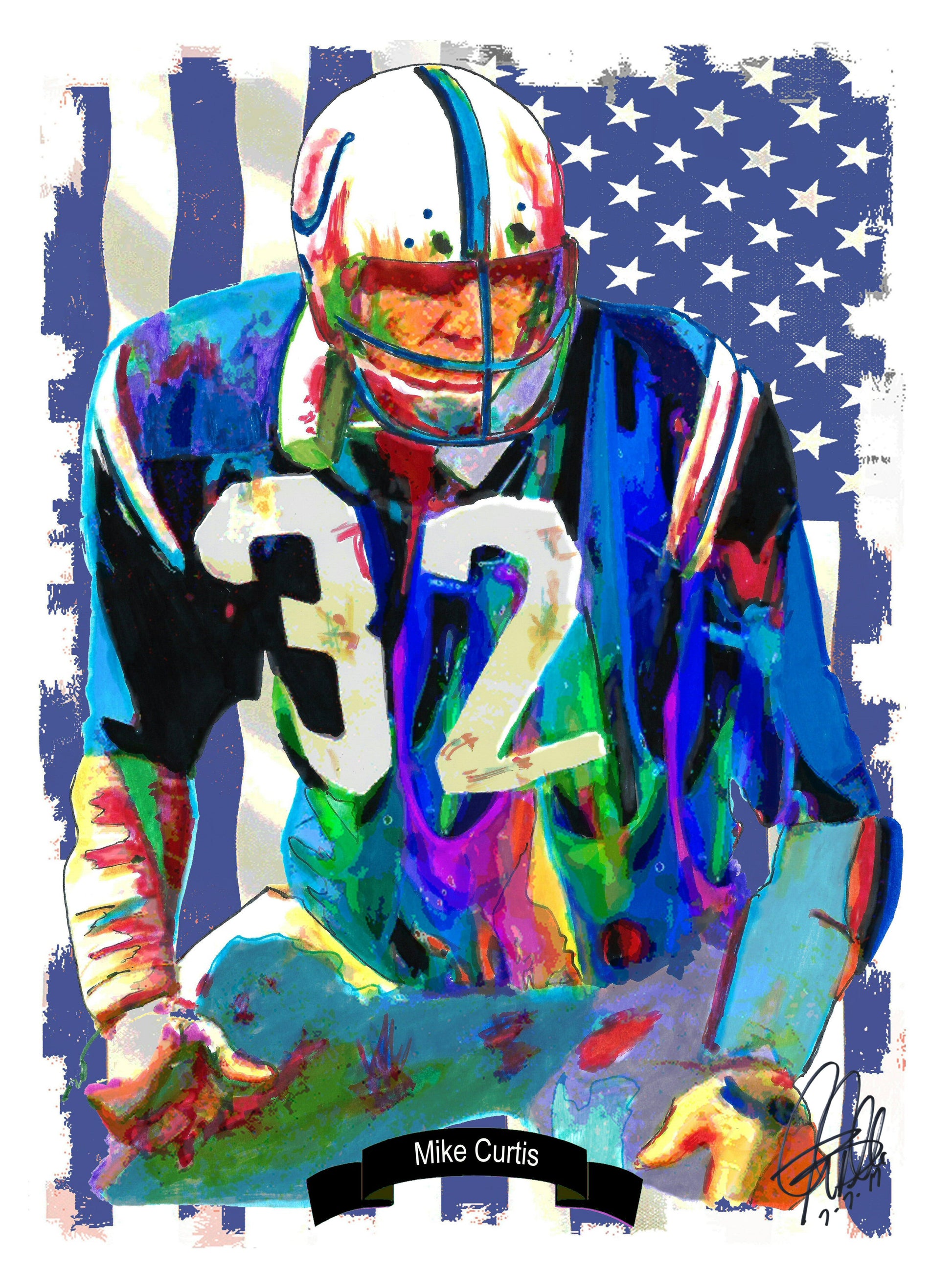 Print from Original Ink Drawing of Mike Curtis of the Baltimore Colts. Printed on 18"x24" Premium Gloss High Quality Photo Paper. Print is great for matting and display – Signed & Dated by Artist on front of print - comes with Certificate of Authenticity with Your Name - will be shipped inside 3 x 30" 2 Mil Industrial Poly Bag & 2" x 19" Kraft Mailing Tubes with End Caps - .070: thick