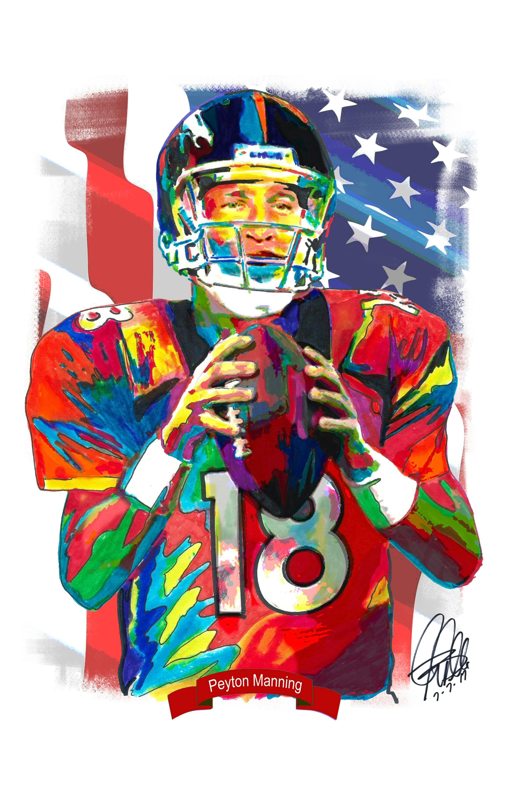 Print from Original Ink Drawing of Peyton Manning of the Denver Broncos. Printed on 11"x17" Premium Gloss High Quality Photo Paper. Print is great for matting and display – Signed & Dated by Artist on front of print - comes with Certificate of Authenticity with Your Name - will be shipped inside 3 x 30" 2 Mil Industrial Poly Bag & 2" x 19" Kraft Mailing Tubes with End Caps - .070: thick