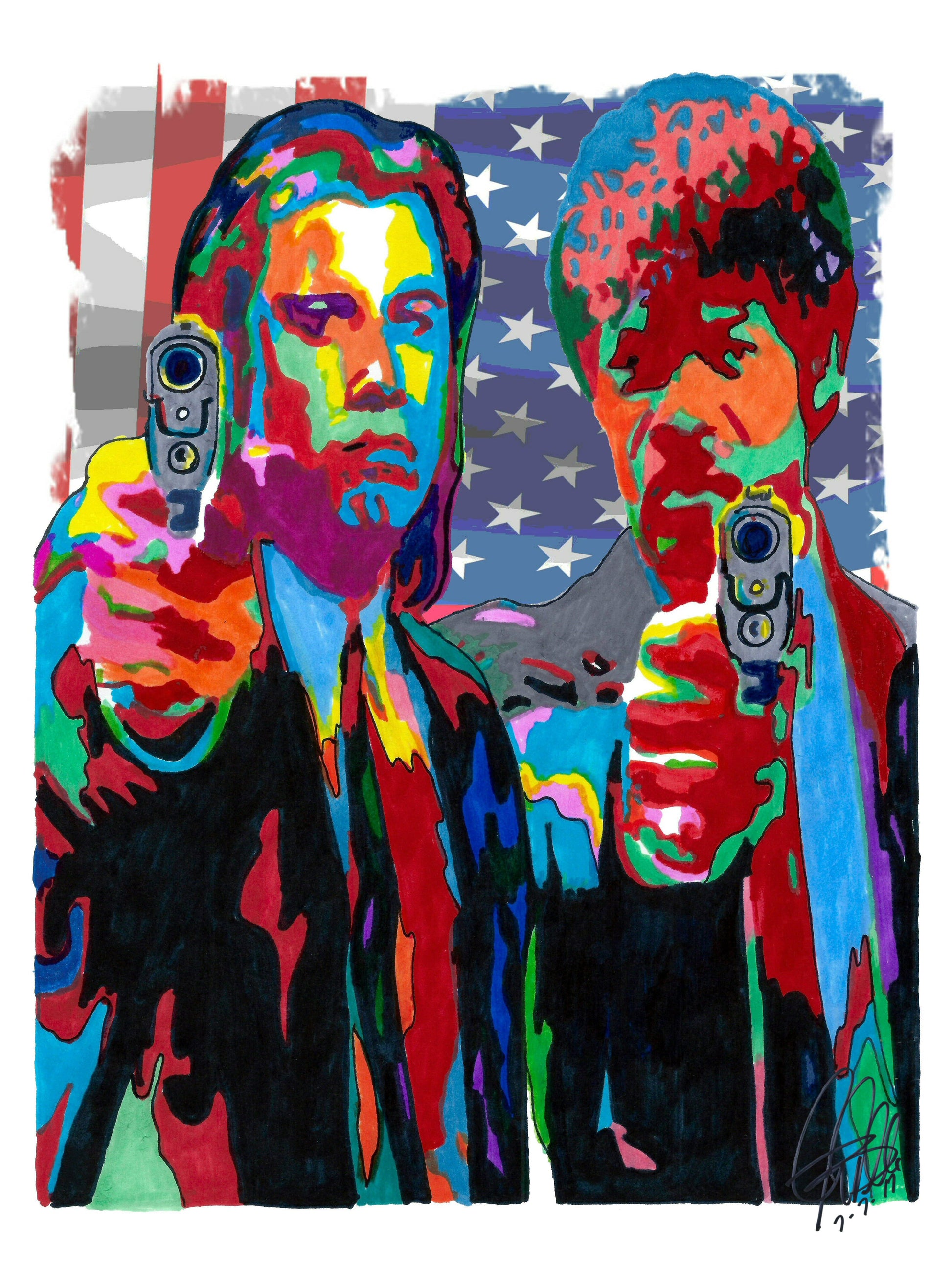 Print from Original Ink Drawing of Pulp Fiction. Printed on 18"x24" Premium Gloss High Quality Photo Paper. Print is great for matting and display – Signed & Dated by Artist on front of print - comes with Certificate of Authenticity with Your Name - will be shipped inside 3 x 30" 2 Mil Industrial Poly Bag & 2" x 19" Kraft Mailing Tubes with End Caps - .070: thick