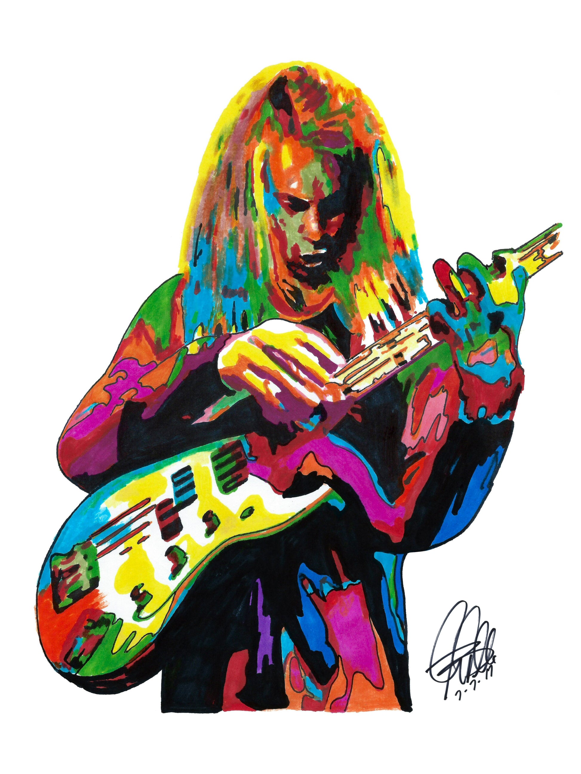 Print from Original Ink Drawing of Billy Sheehan. Printed on 8.5"x11" Premium Gloss High Quality Photo Paper. Print is great for matting and display – Signed & Dated by Artist on front of print - comes with Certificate of Authenticity with Your Name - will be shipped inside 12"x12"x1" sturdy container.