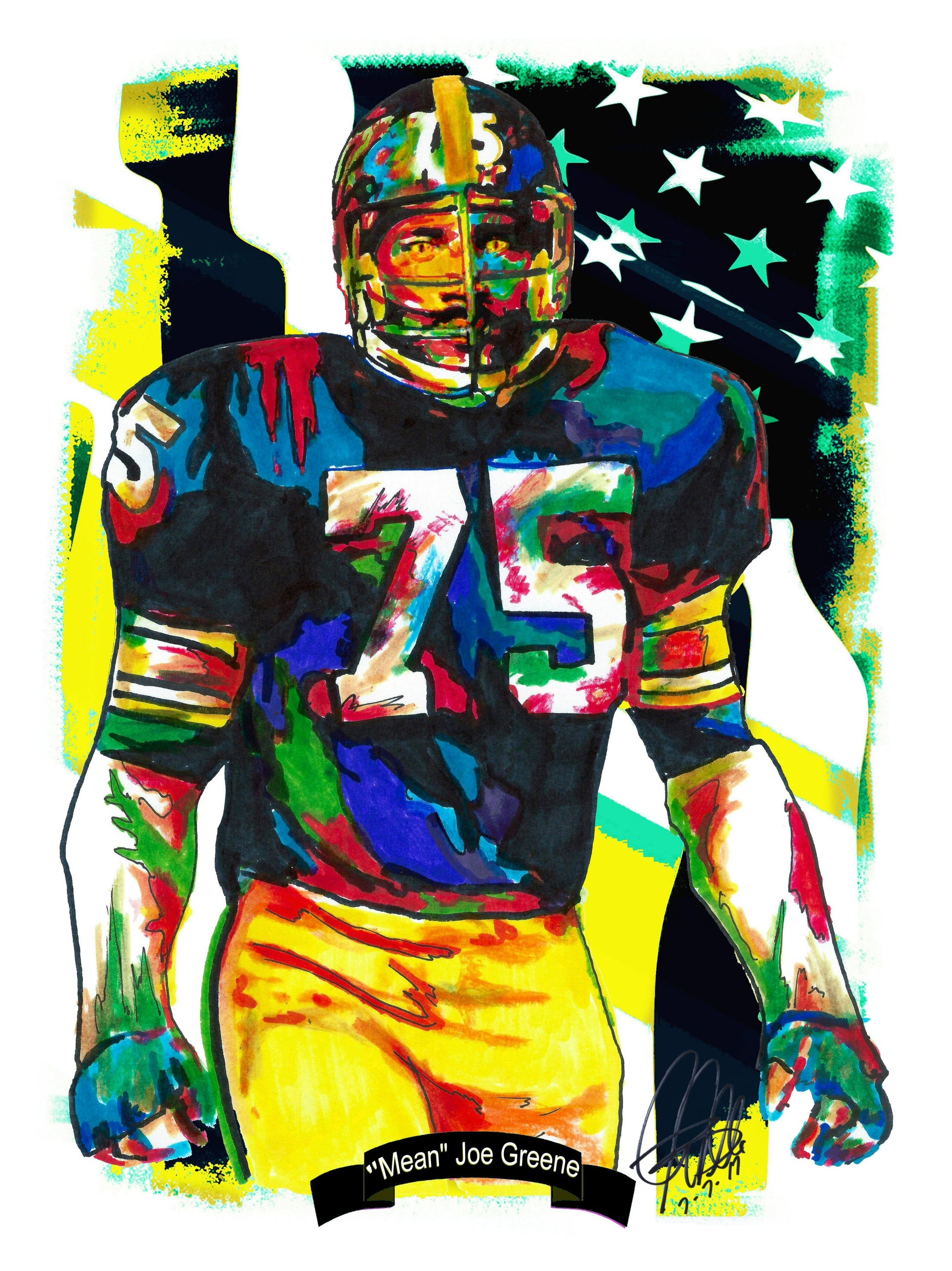 Print from Original Ink Drawing of Joe Greene of the Pittsburgh Steelers. Printed on 8.5"x11" Premium Gloss High Quality Photo Paper. Print is great for matting and display – Signed & Dated by Artist on front of print - comes with Certificate of Authenticity with Your Name - will be shipped inside 12"x12"x1" sturdy container.