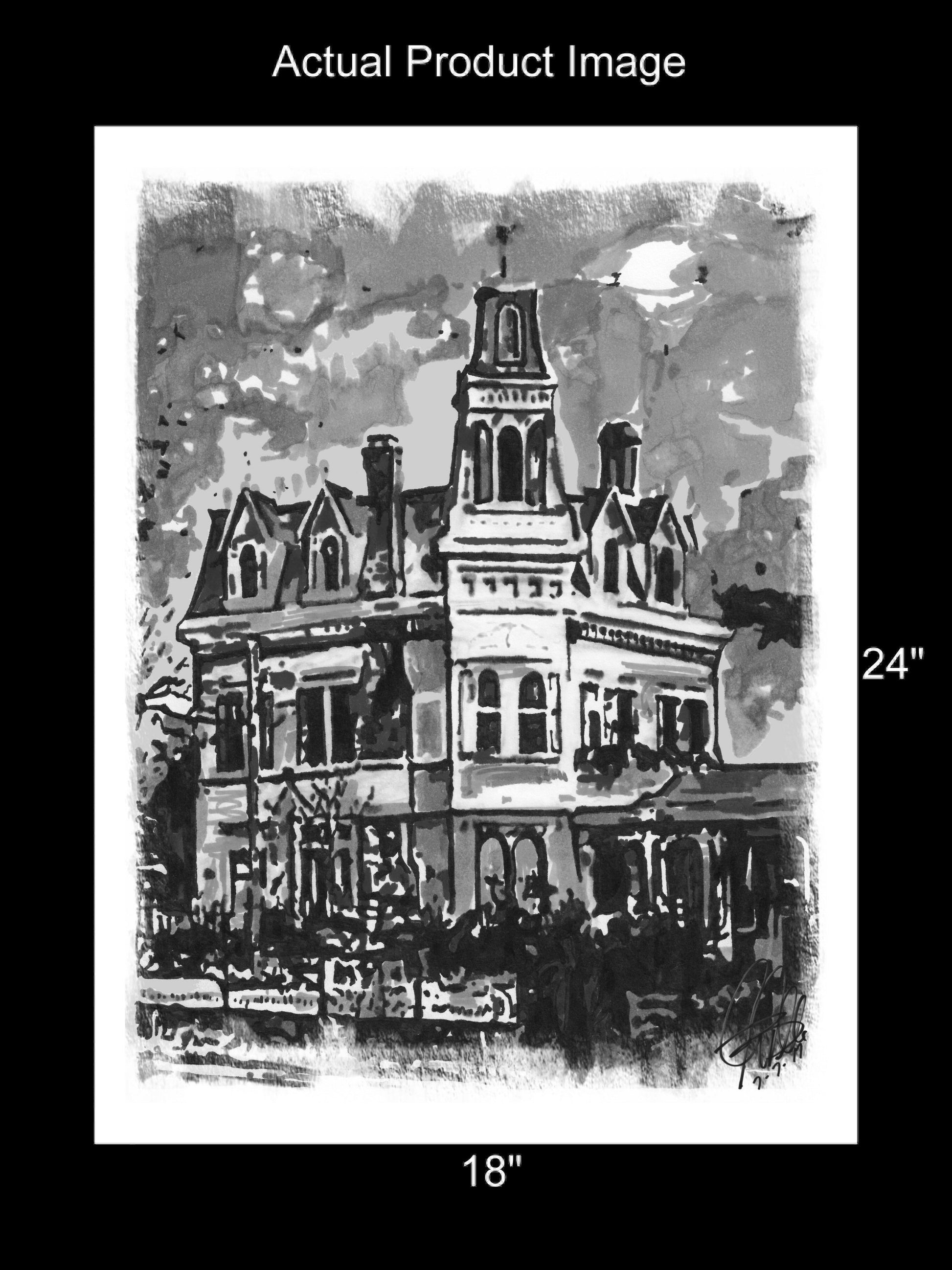 Print from Original Ink Drawing of The Addams Family Mansion. Printed on 18"x24" Premium Gloss High Quality Photo Paper. Print is great for matting and display – Signed & Dated by Artist on front of print - comes with Certificate of Authenticity with Your Name - will be shipped inside 3 x 30" 2 Mil Industrial Poly Bag & 2" x 19" Kraft Mailing Tubes with End Caps - .070: thick