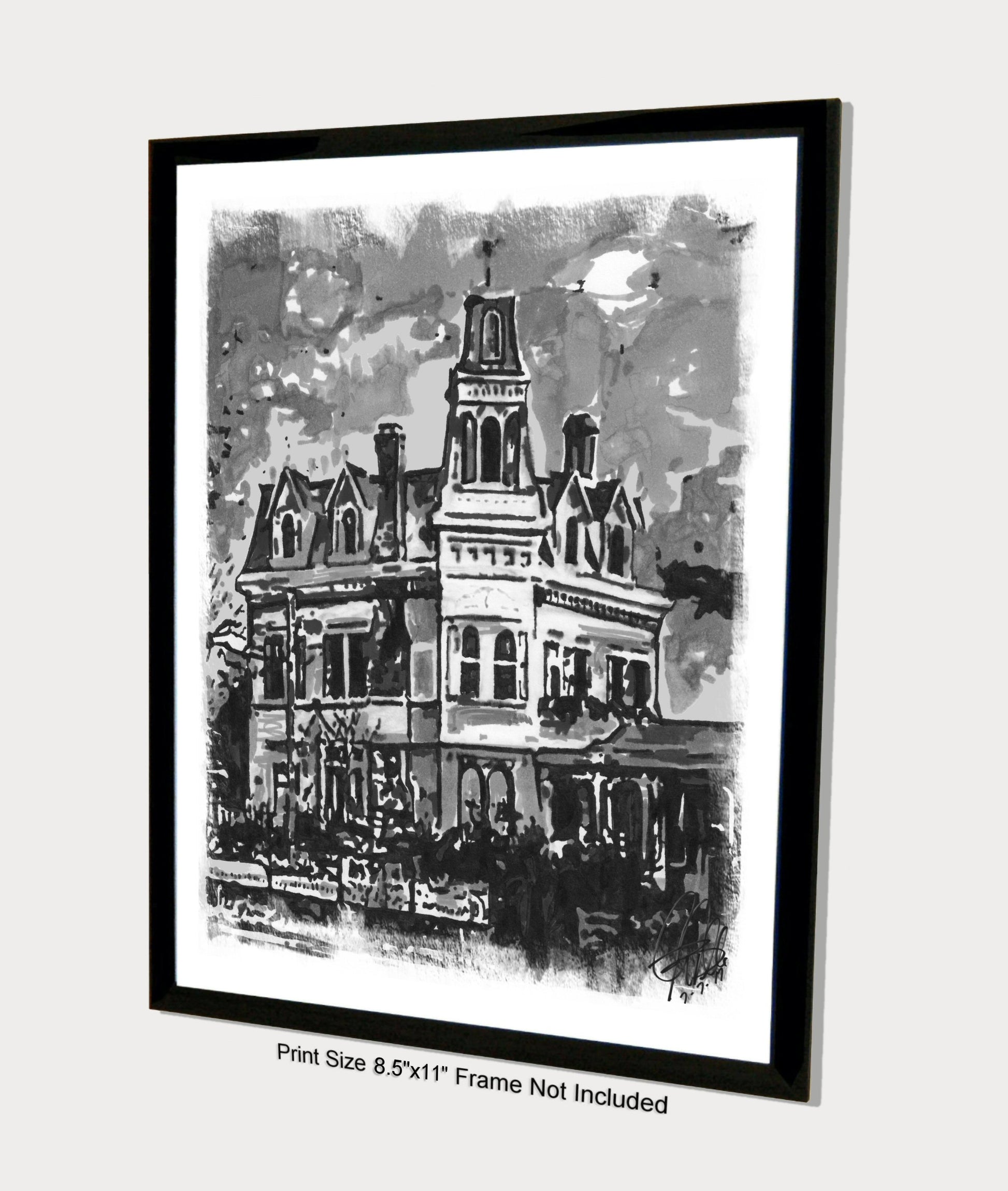 Print from Original Ink Drawing of The Addams Family Mansion. Printed on 8.5"x11" Premium Gloss High Quality Photo Paper. Print is great for matting and display – Signed & Dated by Artist on front of print - comes with Certificate of Authenticity with Your Name - will be shipped inside 12"x12"x1" sturdy container.
