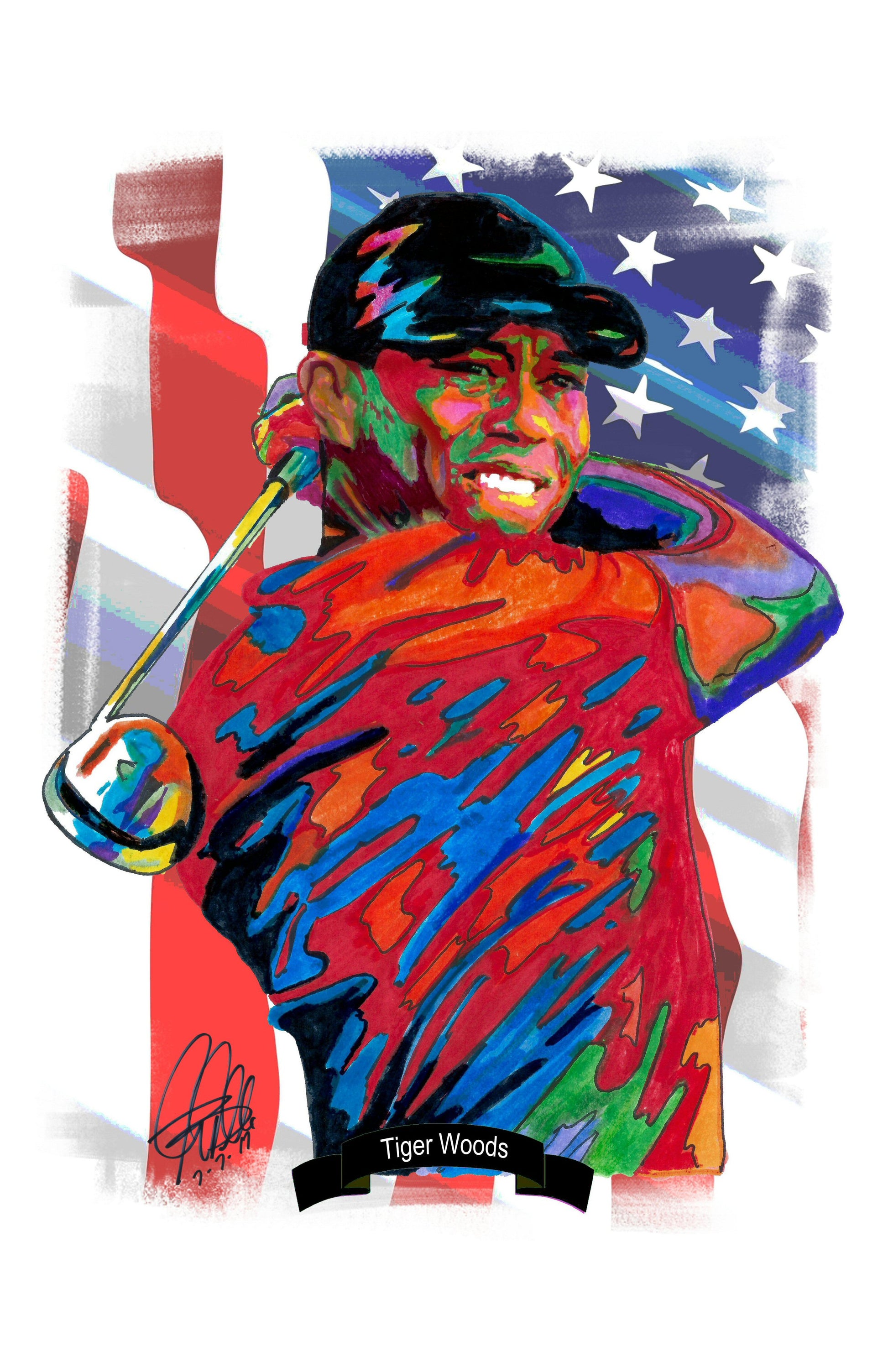 Print from Original Ink Drawing of Tiger Woods. Printed on 11"x17" Premium Gloss High Quality Photo Paper. Print is great for matting and display – Signed & Dated by Artist on front of print - comes with Certificate of Authenticity with Your Name - will be shipped inside 3 x 30" 2 Mil Industrial Poly Bag & 2" x 19" Kraft Mailing Tubes with End Caps - .070: thick