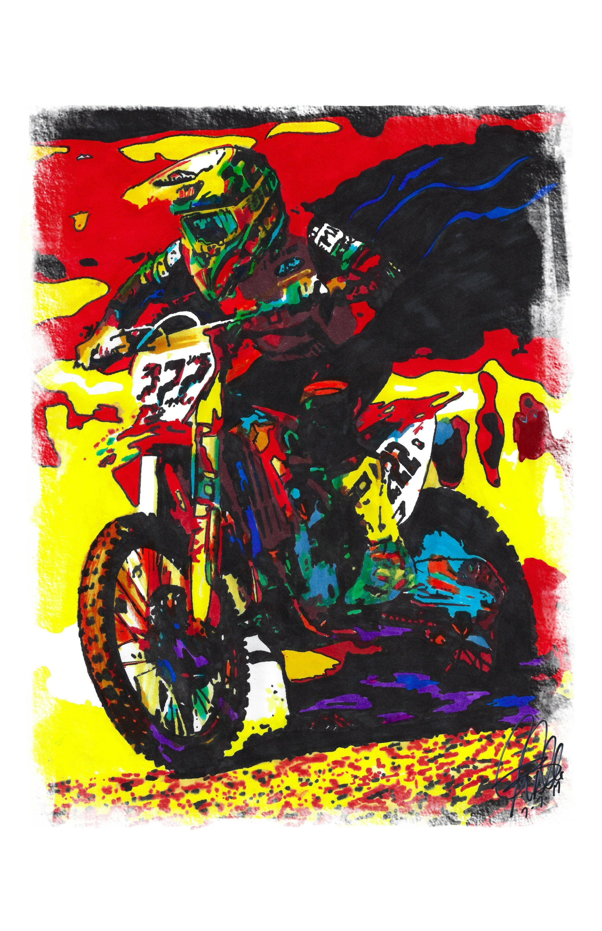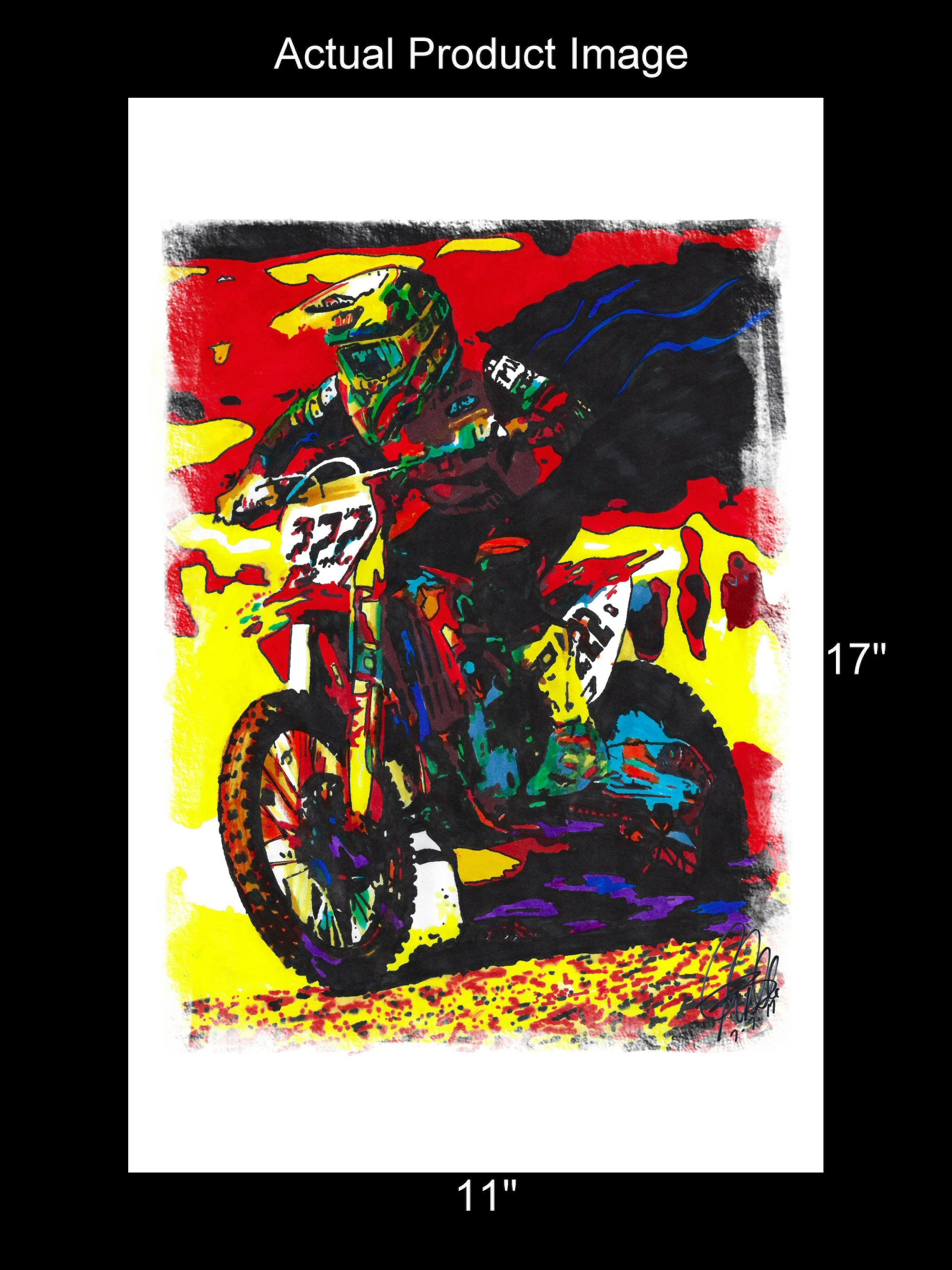 Print from Original Ink Drawing of Tony Cairoli. Printed on 11"x17" Premium Gloss High Quality Photo Paper. Print is great for matting and display – Signed & Dated by Artist on front of print - comes with Certificate of Authenticity with Your Name - will be shipped inside 3 x 30" 2 Mil Industrial Poly Bag & 2" x 19" Kraft Mailing Tubes with End Caps - .070: thick