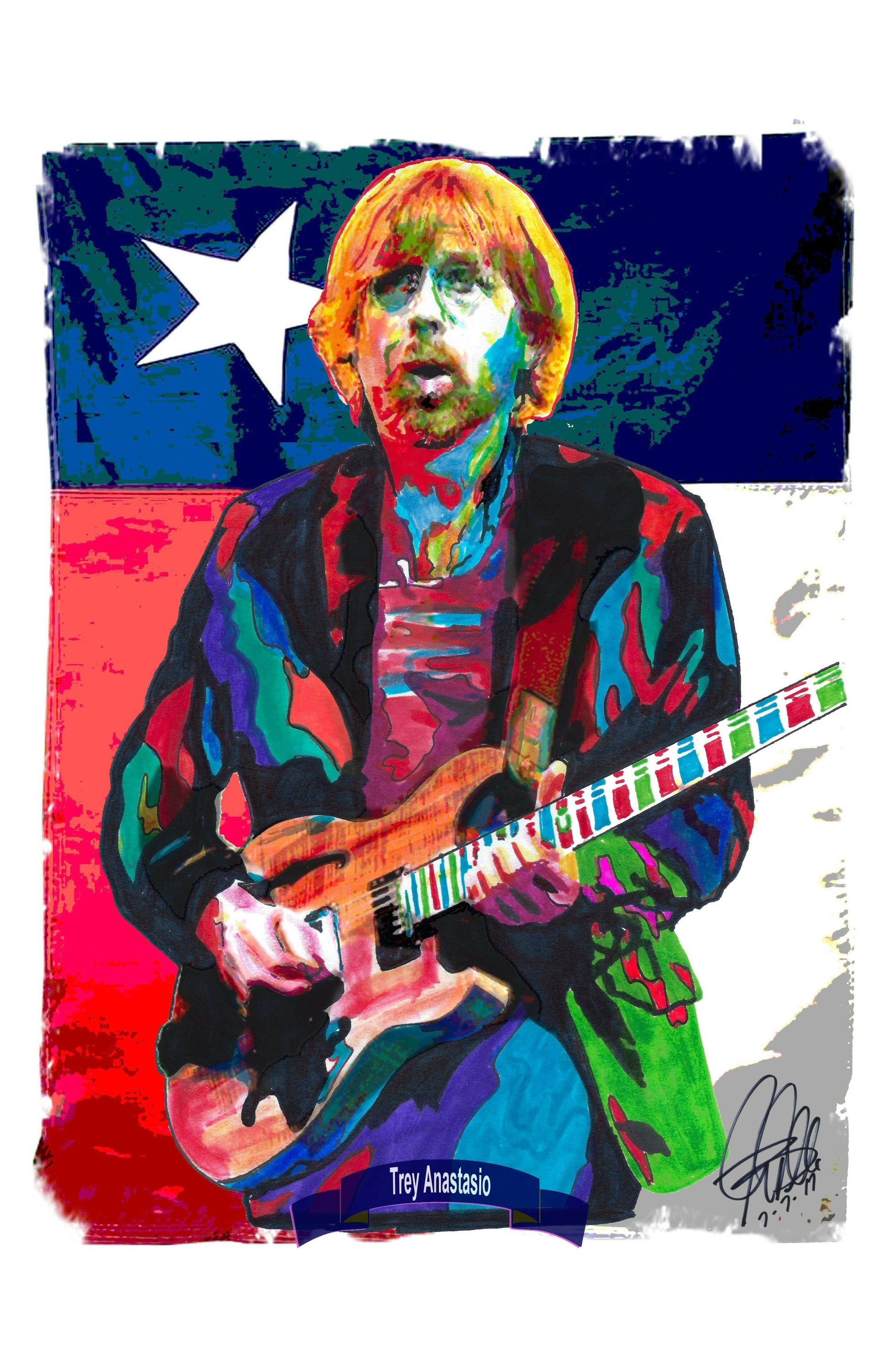 Print from Original Ink Drawing of Trey Anastasio of Phish. Printed on 11"x17" Premium Gloss High Quality Photo Paper. Print is great for matting and display – Signed & Dated by Artist on front of print - comes with Certificate of Authenticity with Your Name - will be shipped inside 3 x 30" 2 Mil Industrial Poly Bag & 2" x 19" Kraft Mailing Tubes with End Caps - .070: thick
