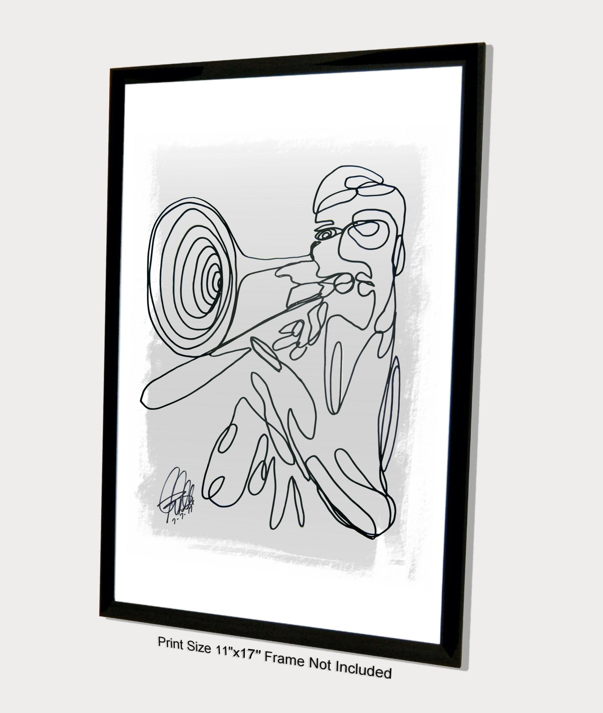 Print from Original Ink Drawing of Trombone Player. Printed on 11"x17" Premium Gloss High Quality Photo Paper. Print is great for matting and display – Signed & Dated by Artist on front of print - comes with Certificate of Authenticity with Your Name - will be shipped inside 3 x 30" 2 Mil Industrial Poly Bag & 2" x 19" Kraft Mailing Tubes with End Caps - .070: thick