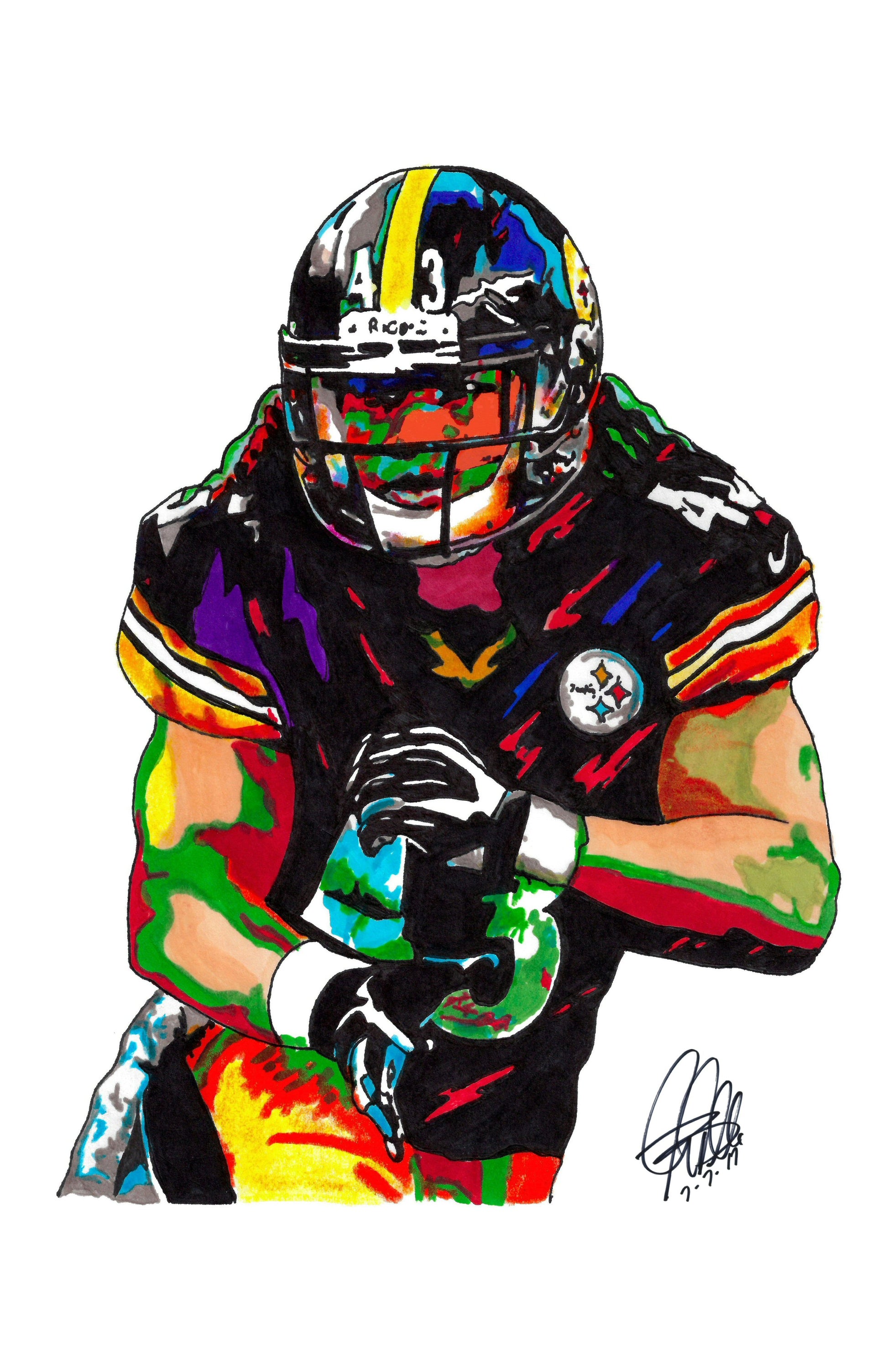 Print from Original Ink Drawing of Troy Polamalu of the Pittsburgh Steelers. Printed on 11"x17" Premium Gloss High Quality Photo Paper. Print is great for matting and display – Signed & Dated by Artist on front of print - comes with Certificate of Authenticity with Your Name - will be shipped inside 3 x 30" 2 Mil Industrial Poly Bag & 2" x 19" Kraft Mailing Tubes with End Caps - .070: thick