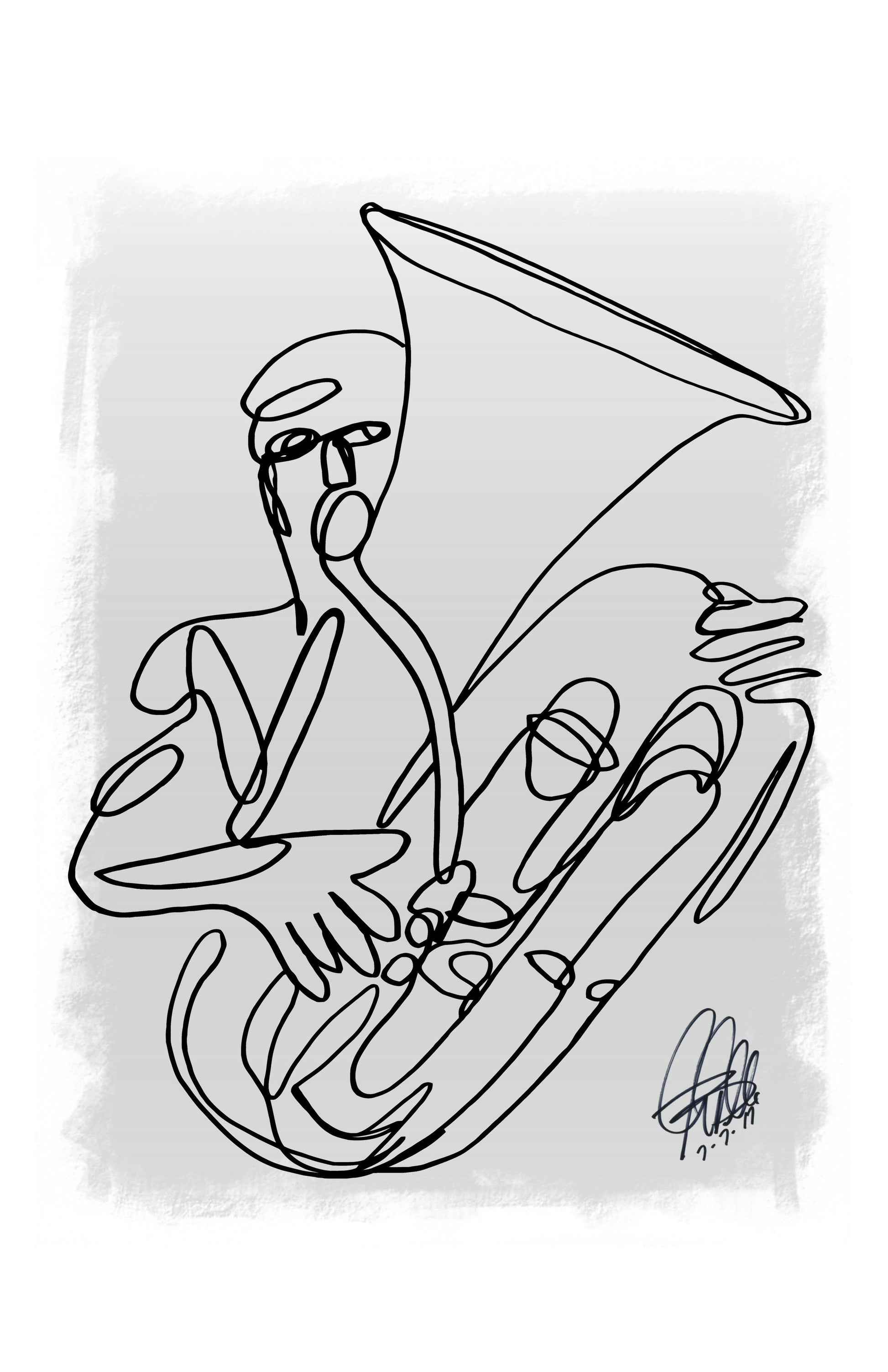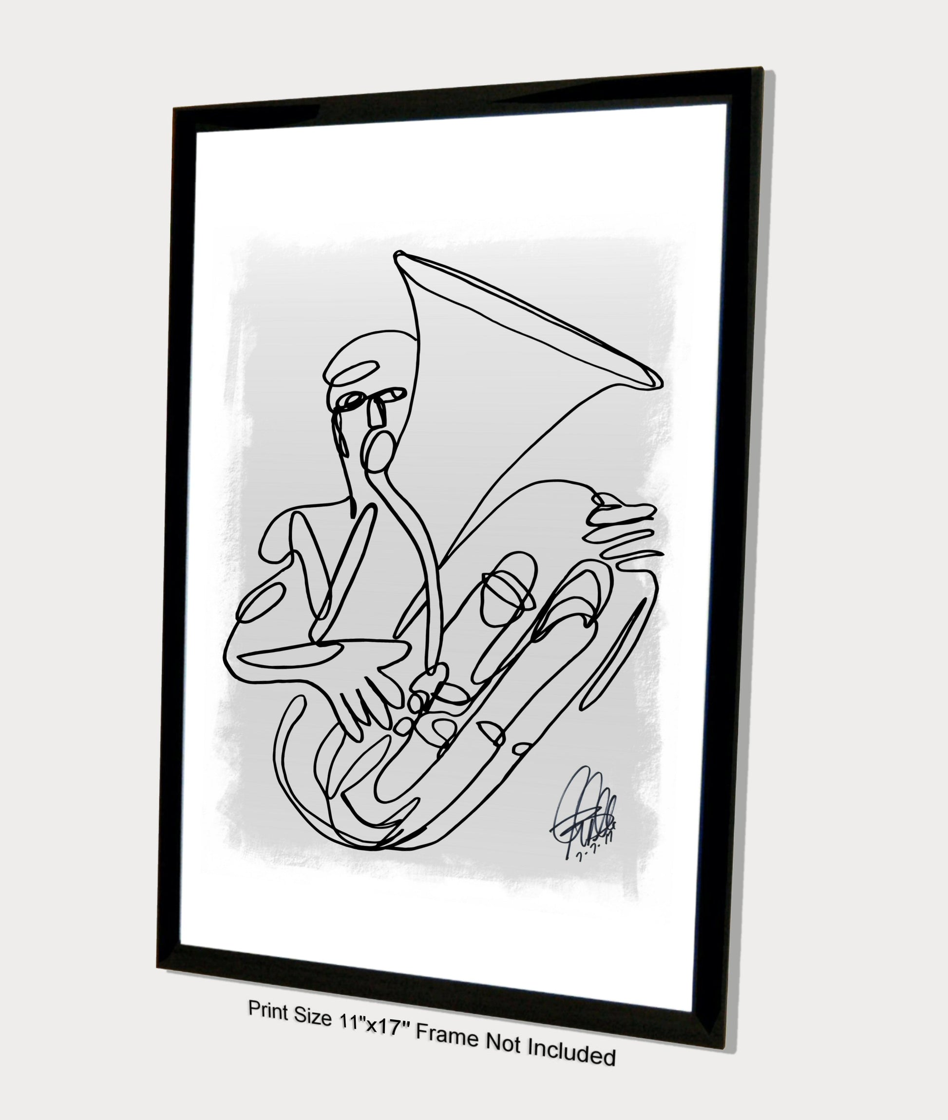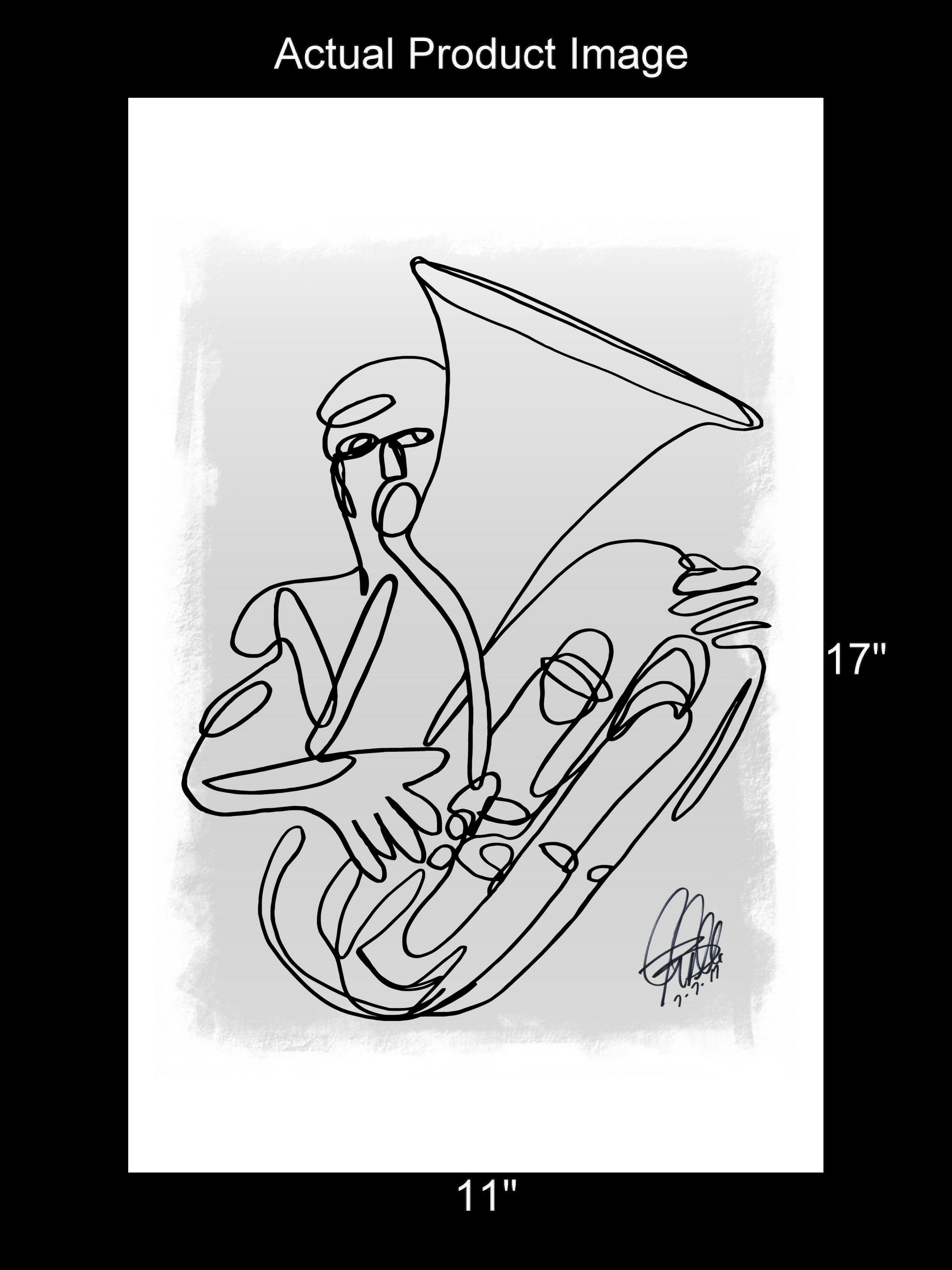 Print from Original Ink Drawing of Tuba Player. Printed on 11"x17" Premium Gloss High Quality Photo Paper. Print is great for matting and display – Signed & Dated by Artist on front of print - comes with Certificate of Authenticity with Your Name - will be shipped inside 3 x 30" 2 Mil Industrial Poly Bag & 2" x 19" Kraft Mailing Tubes with End Caps - .070: thick