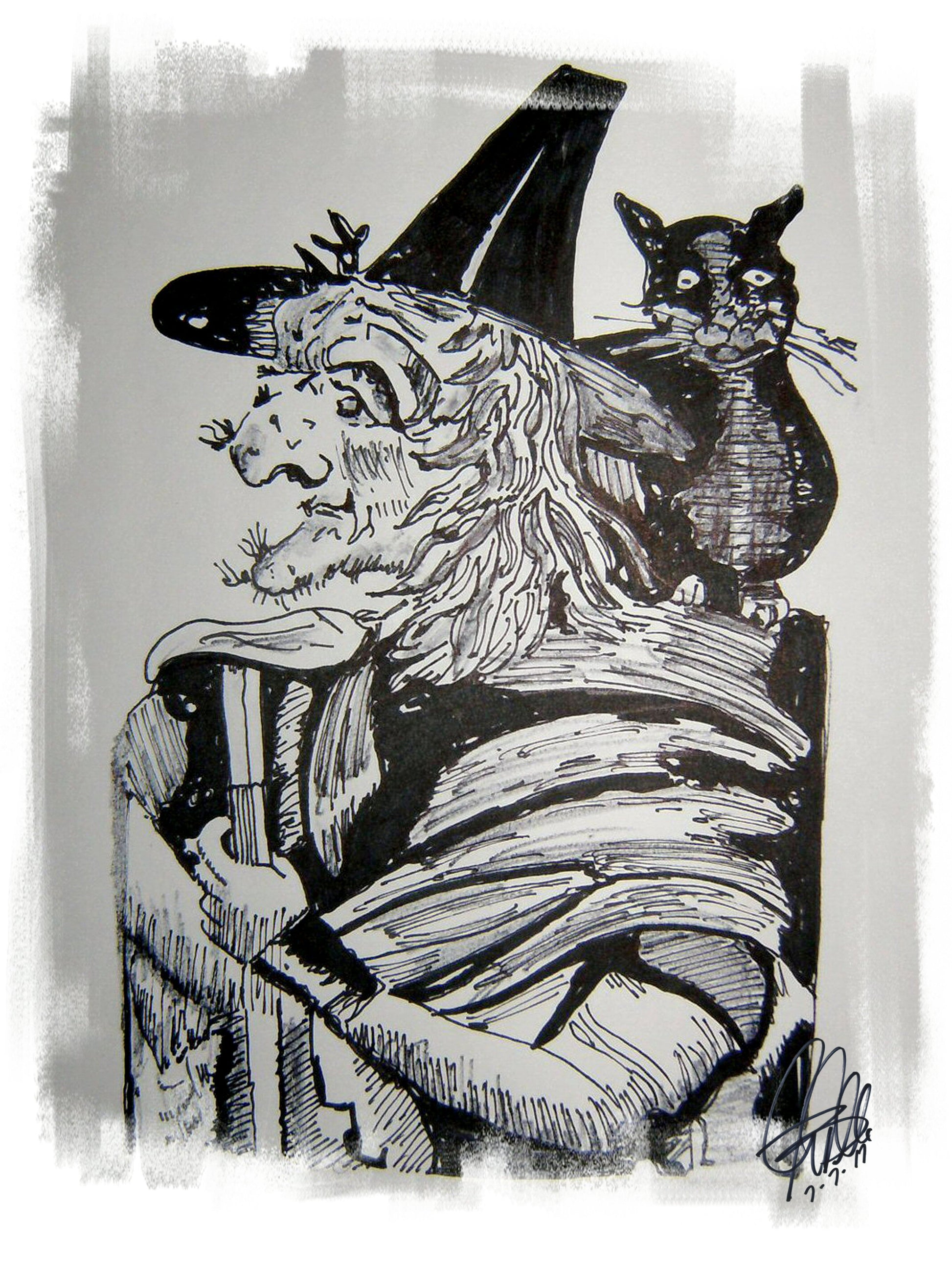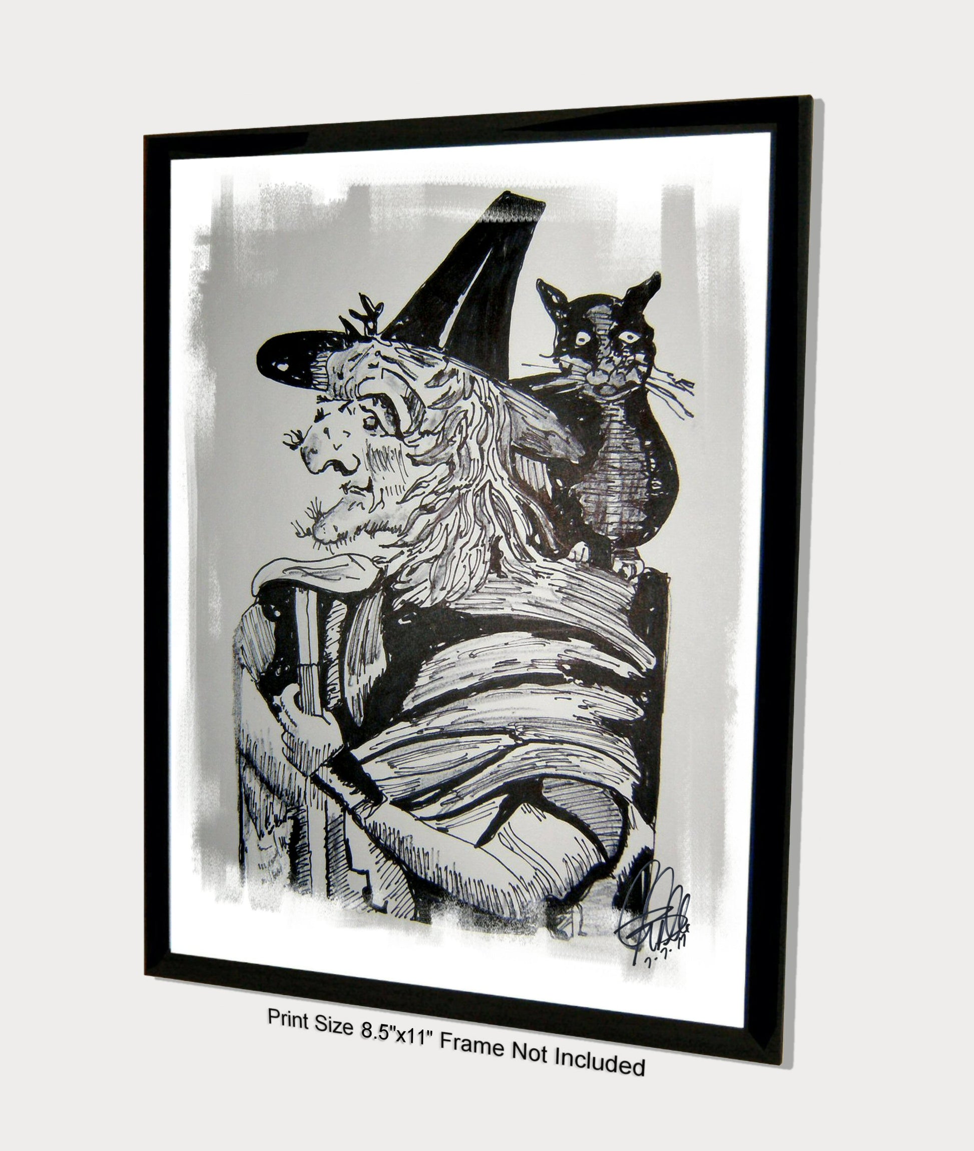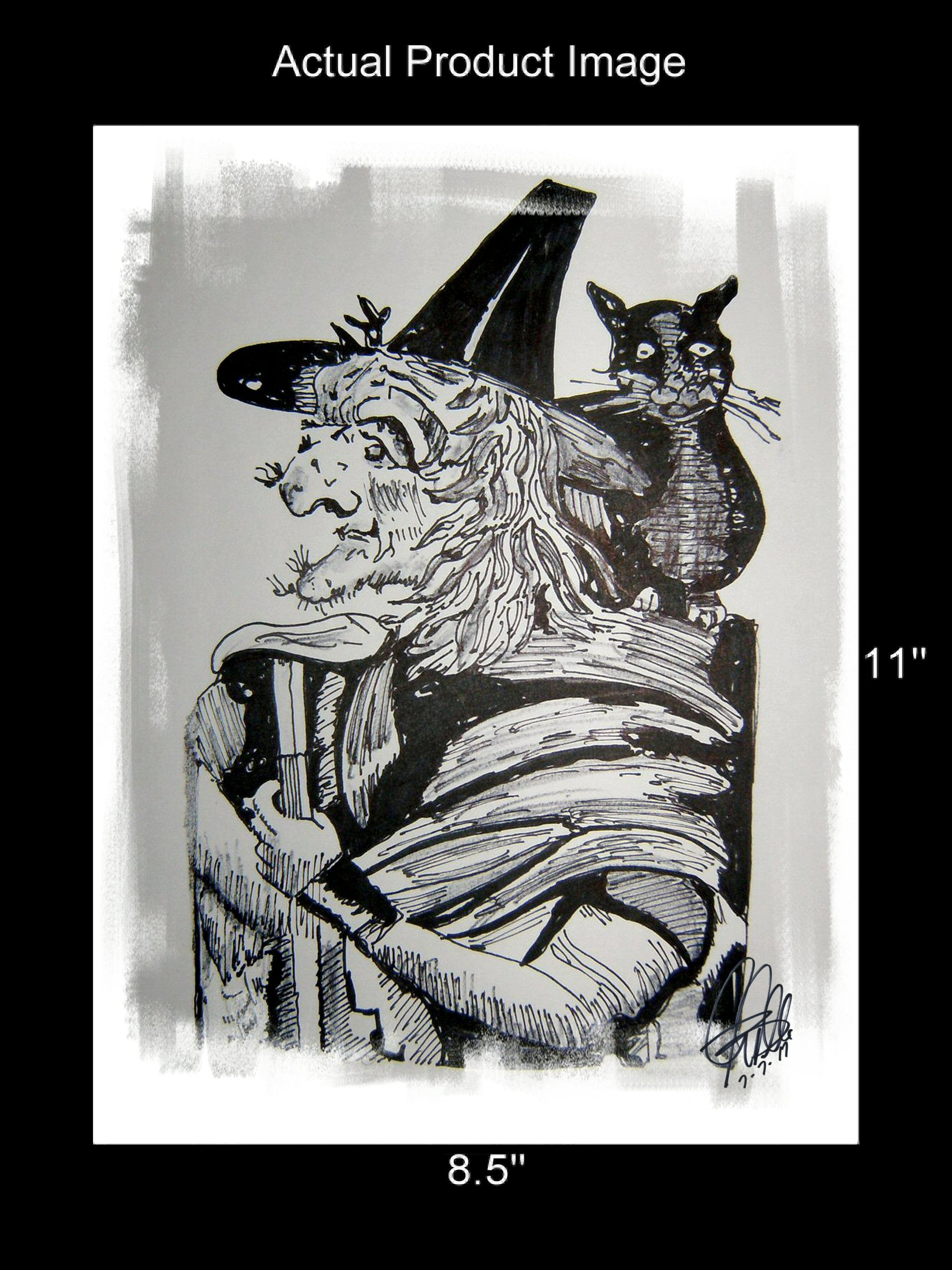 Print from Original Ink Drawing of Witch and Black Cat. Printed on 8.5"x11" Premium Gloss High Quality Photo Paper. Print is great for matting and display – Signed & Dated by Artist on front of print - comes with Certificate of Authenticity with Your Name - will be shipped inside 12"x12"x1" sturdy container.