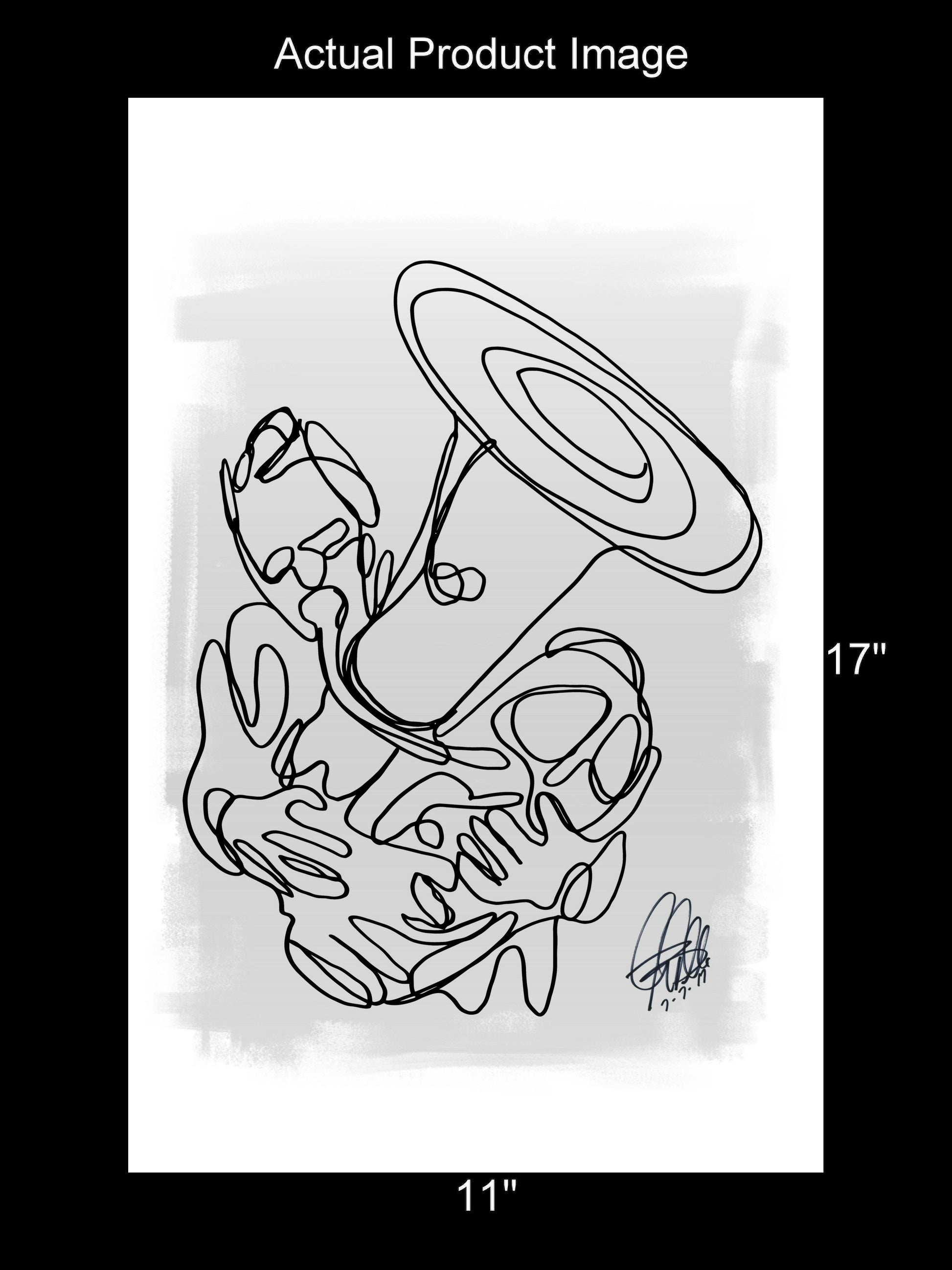 Print from Original Ink Drawing of Tuba Player. Printed on 11"x17" Premium Gloss High Quality Photo Paper. Print is great for matting and display – Signed & Dated by Artist on front of print - comes with Certificate of Authenticity with Your Name - will be shipped inside 3 x 30" 2 Mil Industrial Poly Bag & 2" x 19" Kraft Mailing Tubes with End Caps - .070: thick