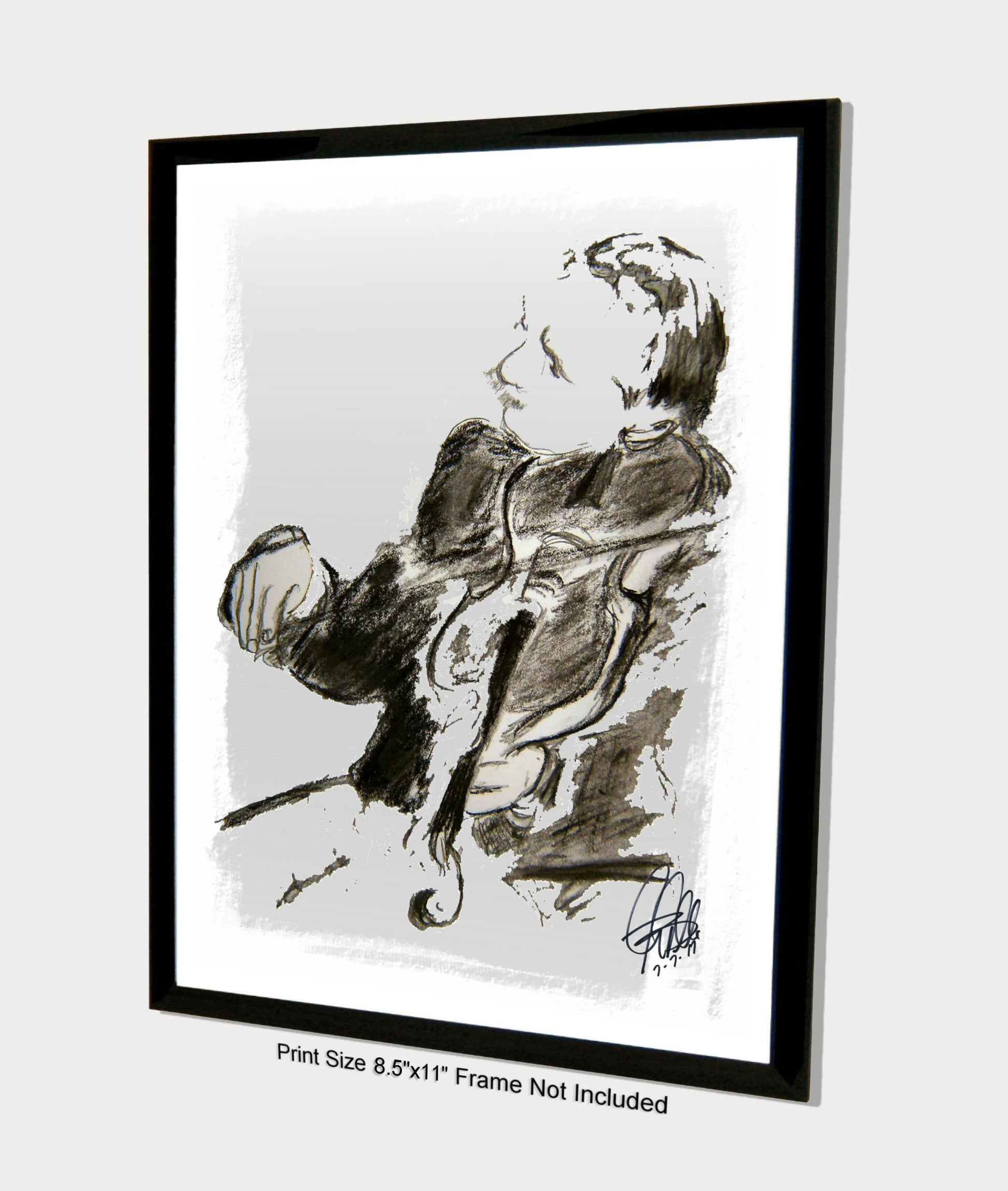 Print from Original Ink Drawing of Violin Player. Printed on 8.5"x11" Premium Gloss High Quality Photo Paper. Print is great for matting and display – Signed & Dated by Artist on front of print - comes with Certificate of Authenticity with Your Name - will be shipped inside 12"x12"x1" sturdy container.