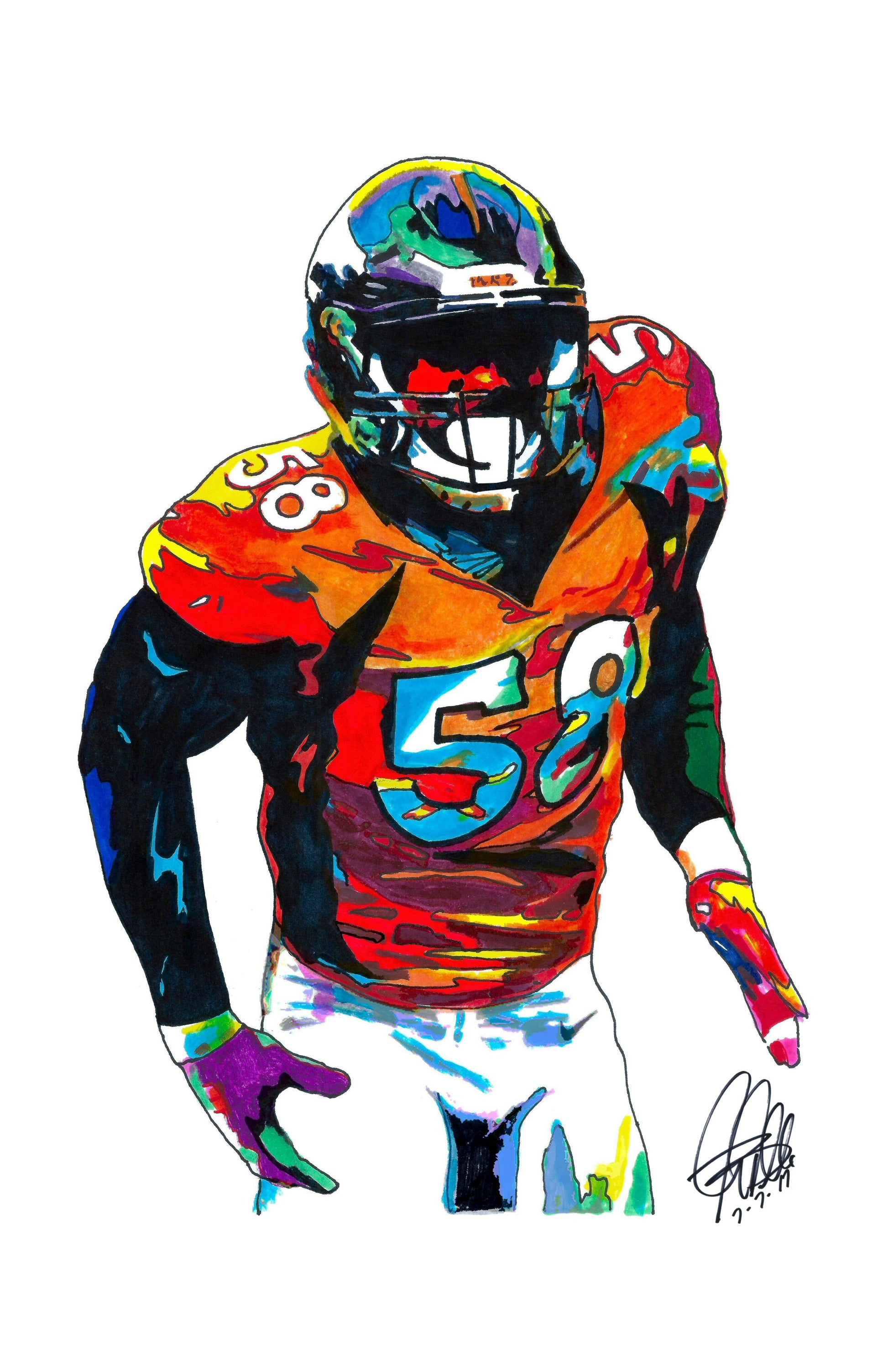 Print from Original Ink Drawing of Von Miller of the Denver Broncos. Printed on 11"x17" Premium Gloss High Quality Photo Paper. Print is great for matting and display – Signed & Dated by Artist on front of print - comes with Certificate of Authenticity with Your Name - will be shipped inside 3 x 30" 2 Mil Industrial Poly Bag & 2" x 19" Kraft Mailing Tubes with End Caps - .070: thick