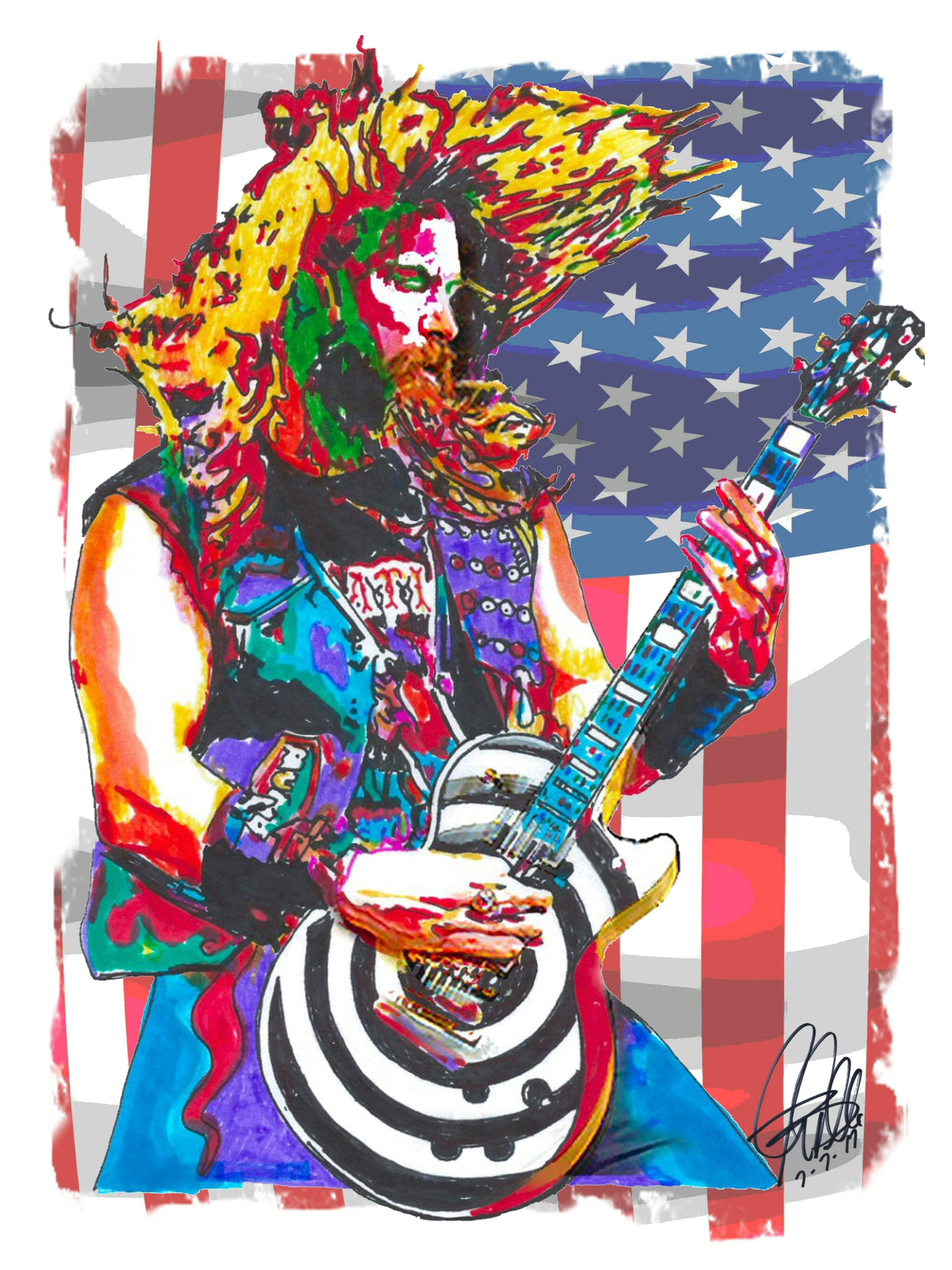 Print from Original Ink Drawing of Zakk Wylde. Printed on 18"x24" Premium Gloss High Quality Photo Paper. Print is great for matting and display – Signed & Dated by Artist on front of print - comes with Certificate of Authenticity with Your Name - will be shipped inside 3 x 30" 2 Mil Industrial Poly Bag & 2" x 19" Kraft Mailing Tubes with End Caps - .070: thick