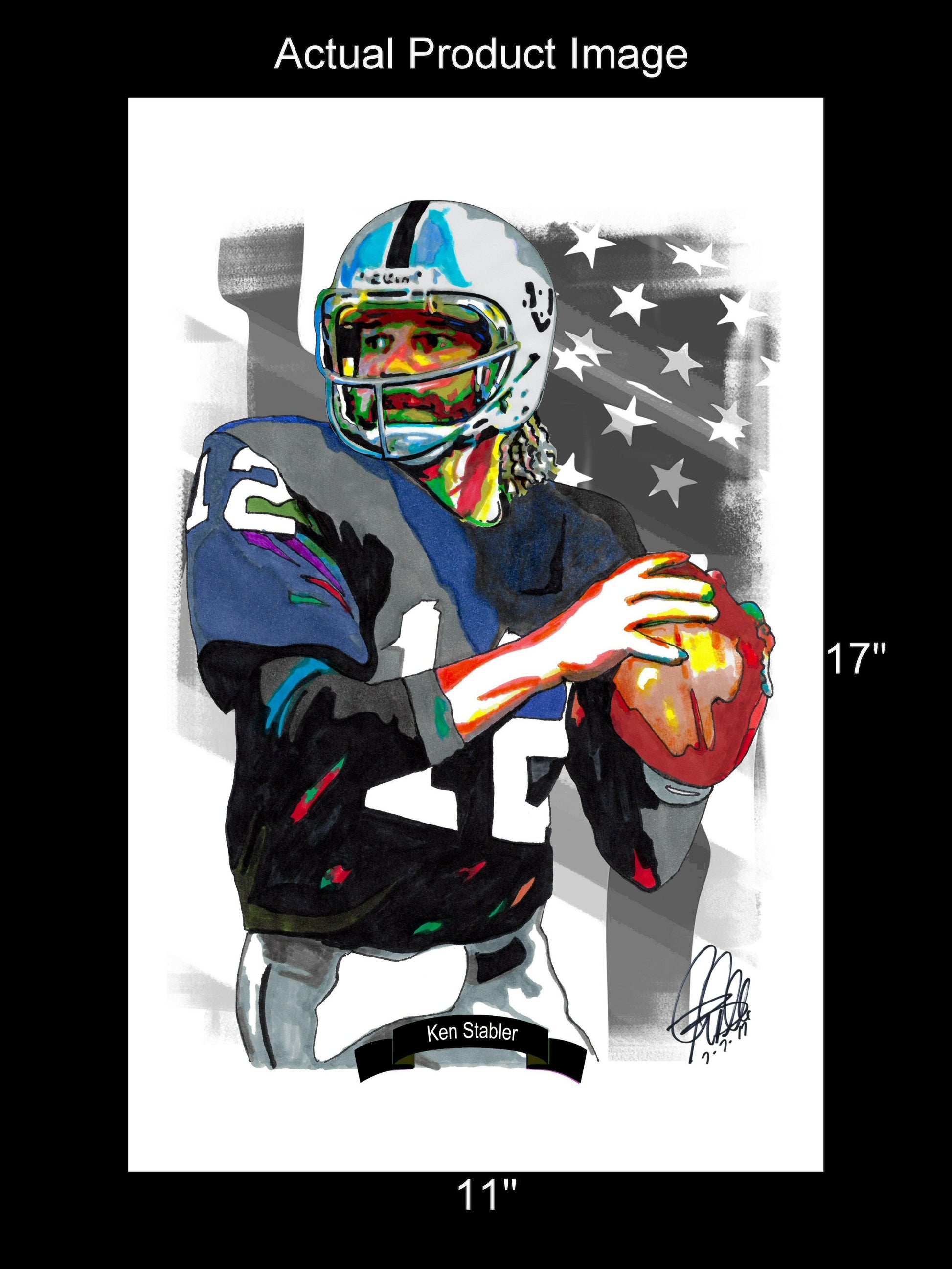 Print from Original Ink Drawing of Ken Stabler of the Oakland Raiders. Printed on 11"x17" Premium Gloss High Quality Photo Paper. Print is great for matting and display – Signed & Dated by Artist on front of print - comes with Certificate of Authenticity with Your Name - will be shipped inside 3 x 30" 2 Mil Industrial Poly Bag & 2" x 19" Kraft Mailing Tubes with End Caps - .070: thick