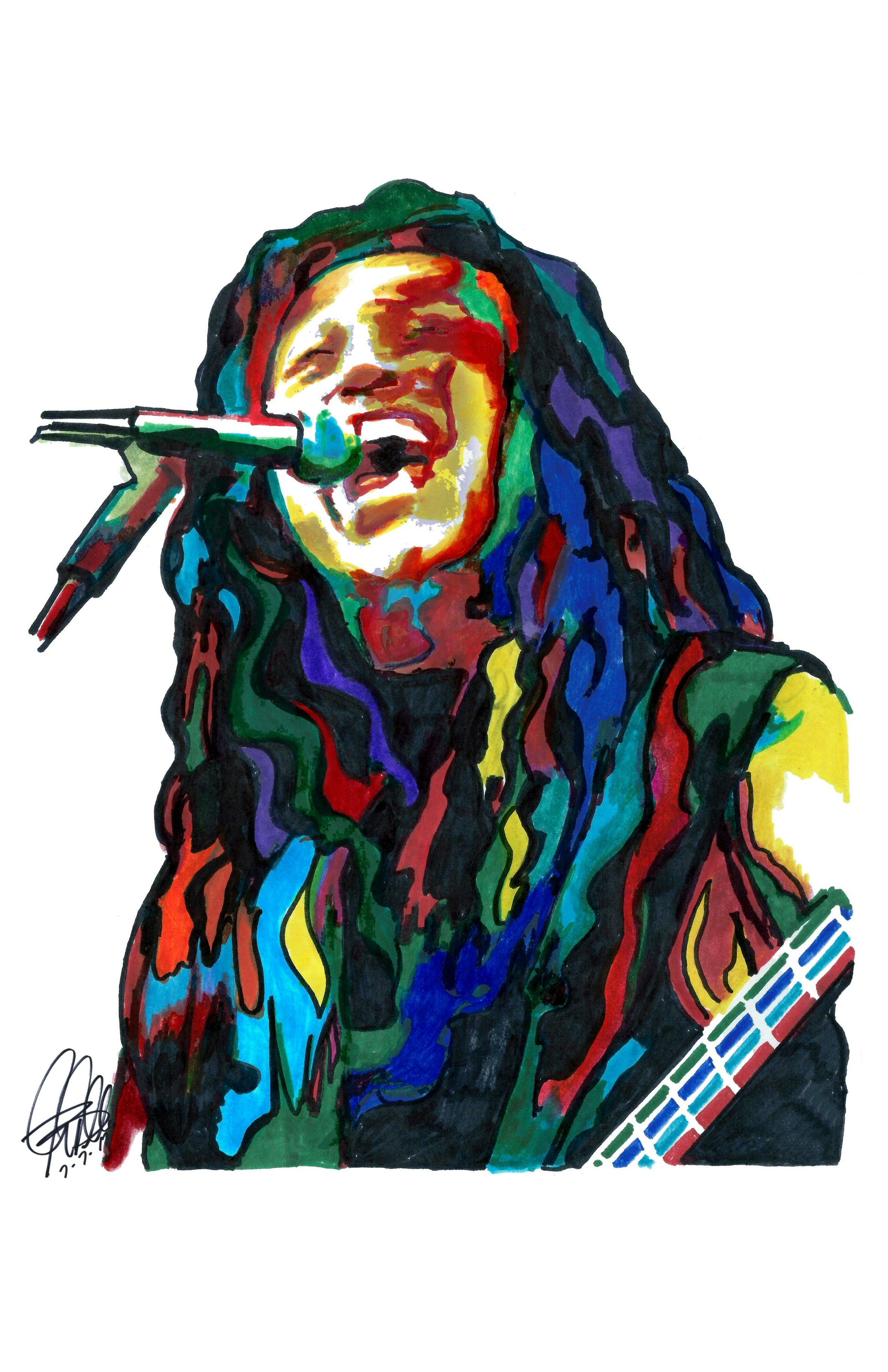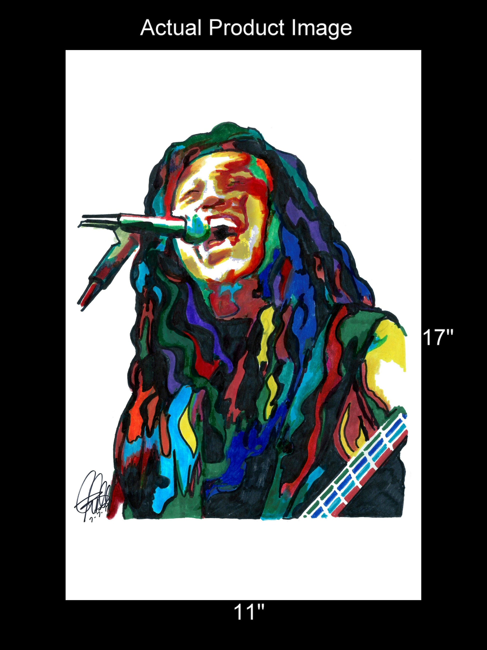 Print from Original Ink Drawing of Tom Araya of Slayer. Printed on 11"x17" Premium Gloss High Quality Photo Paper. Print is great for matting and display – Signed & Dated by Artist on front of print - comes with Certificate of Authenticity with Your Name - will be shipped inside 3 x 30" 2 Mil Industrial Poly Bag & 2" x 19" Kraft Mailing Tubes with End Caps - .070: thick