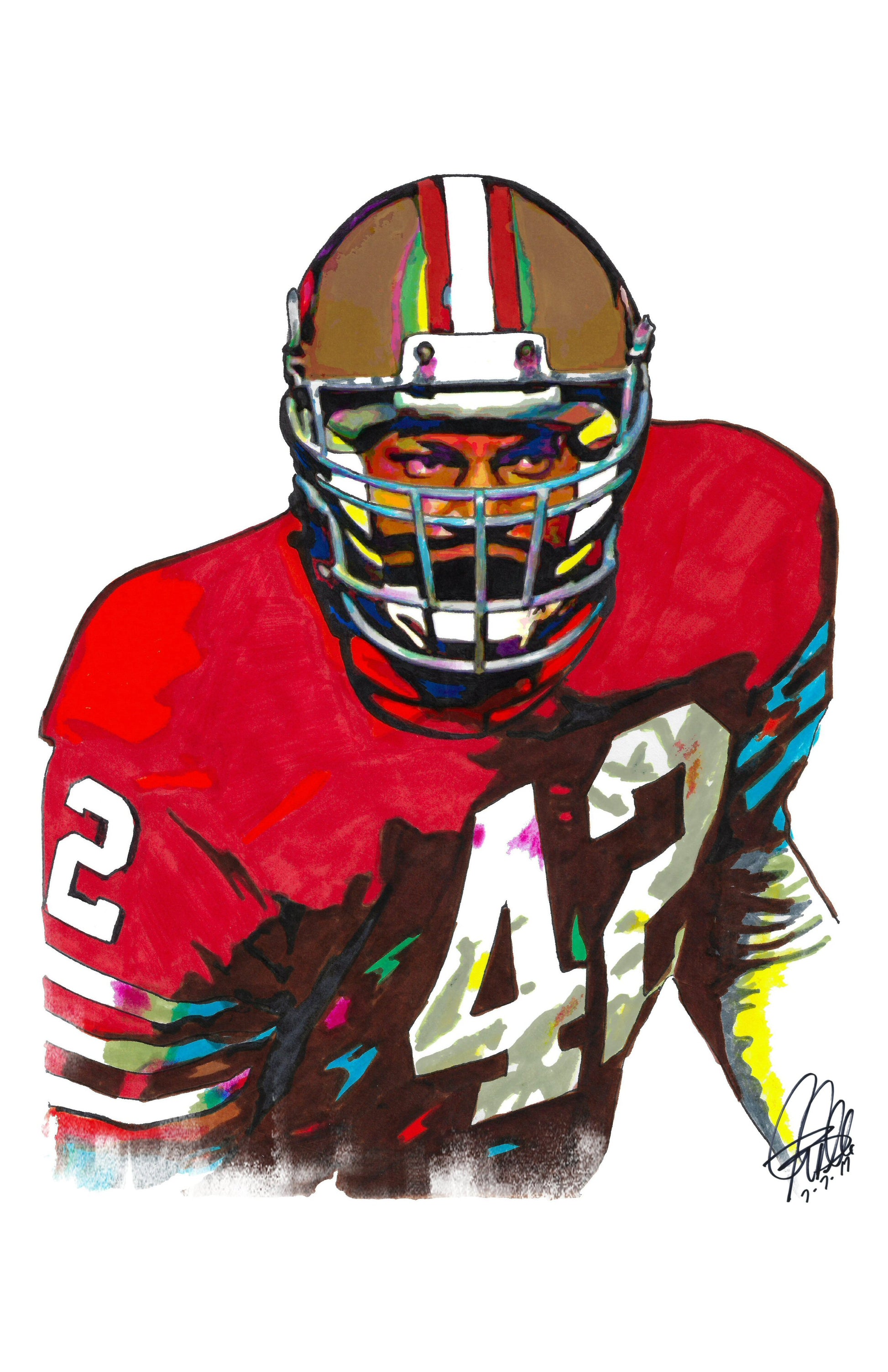 Print from Original Ink Drawing of Ronnie Lott of the San Francisco 49ers. Printed on 11"x17" Premium Gloss High Quality Photo Paper. Print is great for matting and display – Signed & Dated by Artist on front of print - comes with Certificate of Authenticity with Your Name - will be shipped inside 3 x 30" 2 Mil Industrial Poly Bag & 2" x 19" Kraft Mailing Tubes with End Caps - .070: thick.