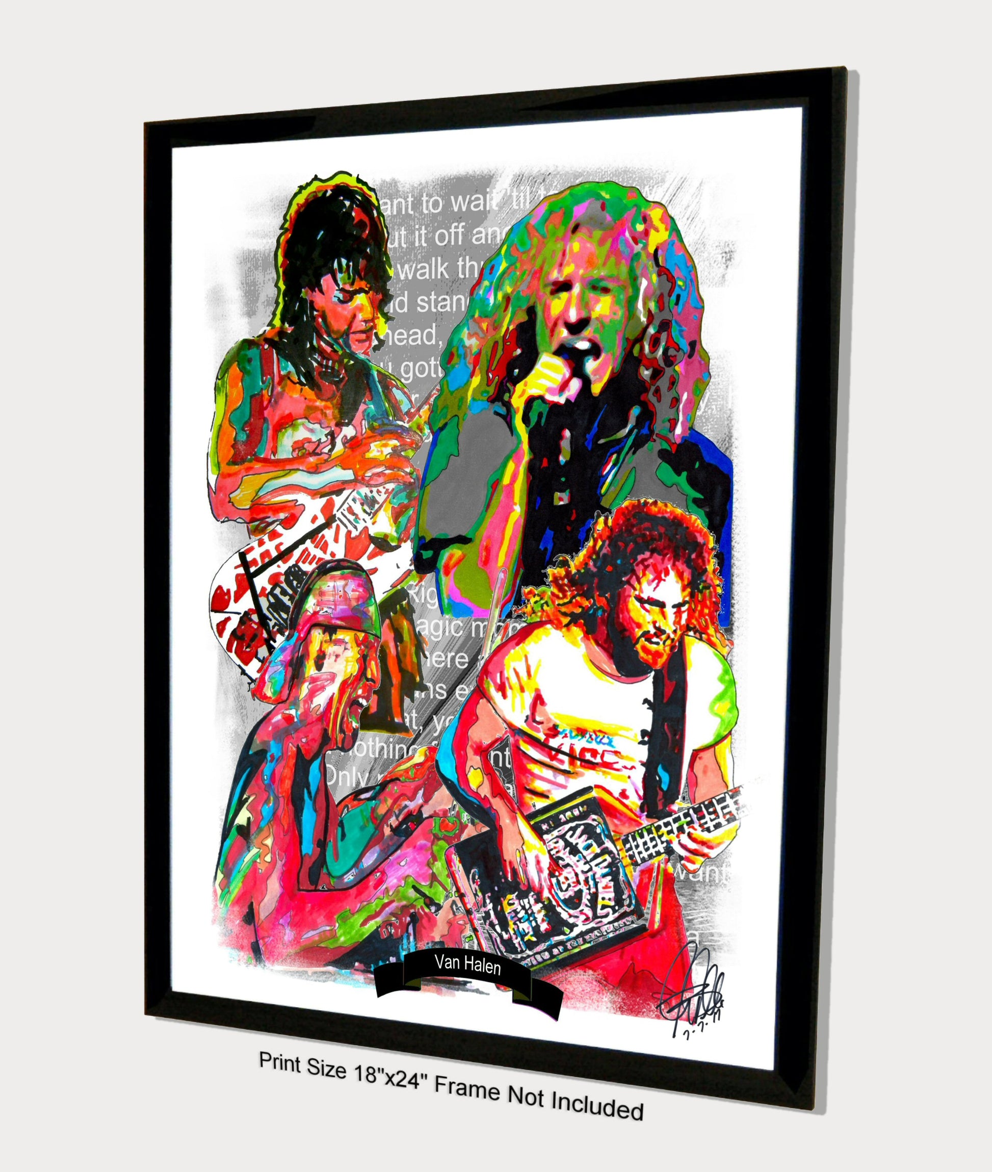 Print from Original Ink Drawing of Van Halen. Printed on 18"x24" Premium Gloss High Quality Photo Paper. Print is great for matting and display – Signed & Dated by Artist on front of print - comes with Certificate of Authenticity with Your Name - will be shipped inside 3 x 30" 2 Mil Industrial Poly Bag & 2" x 19" Kraft Mailing Tubes with End Caps - .070: thick